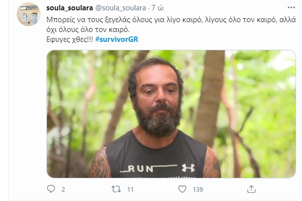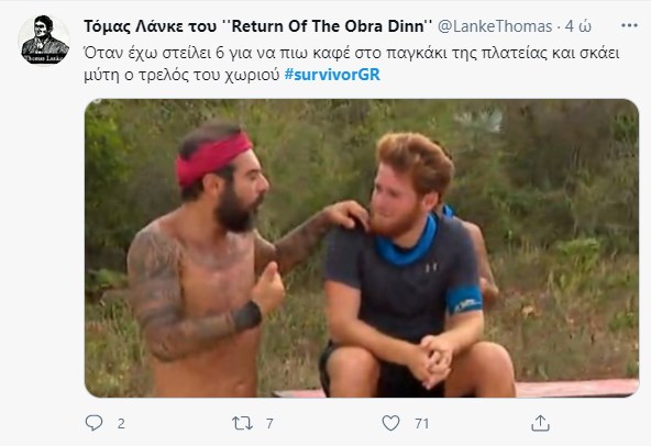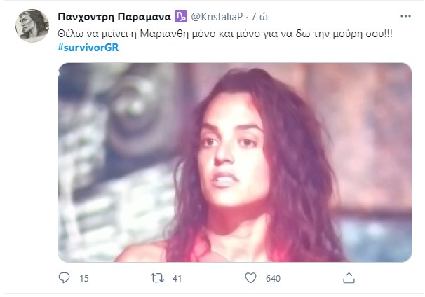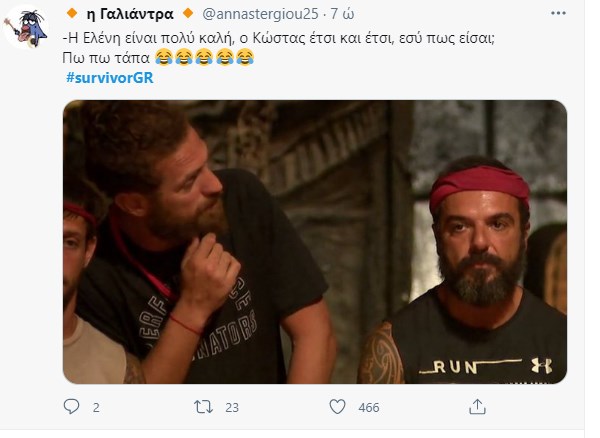 “Πάρτι” στο Twitter για άλλη μια βραδιά, με τους περισσότερους χρήστες να στρέφονται πλέον ανοιχτά κατά του Τριαντάφυλλου, ο οποίος καθημερινά τσακώνεται χωρίς σταματημό με όλα τα μέλη της κόκκινης ομάδας. Χθες στο συμβούλιο του νησιού του Survivor, ψηφίστηκαν ακόμα δύο μέλη της κόκκινης ομάδας προς αποχώρηση. Η Μαριάνθη Κάσδαγλη ήταν η δεύτερη υποψήφια με οκτώ ψήφους, ενώ o Παύλος Γαλακτερός που είχε την ατομική ασυλία, υπέδειξε τον τρίτο υποψήφιο προς αποχώρηση που είναι η Ελένη Χαμπέρη.