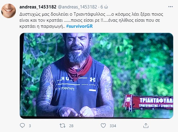 Ο Τριαντάφυλλος αναδείχθηκε για έβδομη φορά υποψήφιος, με τους συμπαίκτες του στο Survivor, να τον ψηφίσουν κάθε φορά. Στο Twitter οι αντιδράσεις είναι πολλές, καθώς οι περισσότεροι χρήστες δεν πιστεύουν πως ο κόσμος ψηφίζει τον τραγουδιστή, που προκαλεί μονίμως καβγάδες και εντάσεις, να μείνει στο ριάλιτι. Αρκετοί γράφουν ότι παραμένει με απόφαση της παραγωγής. Έπειτα από μια δύσκολη ψηφοφορία, ο Λιανός ανακοίνωσε ότι μαζί με τον πρώτο υποψήφιο, Κώστα Παπαδόπουλο, θα είναι ο Τριαντάφυλλος. Στη συνέχεια, ο Νίκος Μπάρτζης αποφάσισε να επιλέξει τον Παύλο Γαλακτερό ενώ ο Ηλίας Μπόγδανος ψήφισε την Ελευθερία Ελευθερίου.