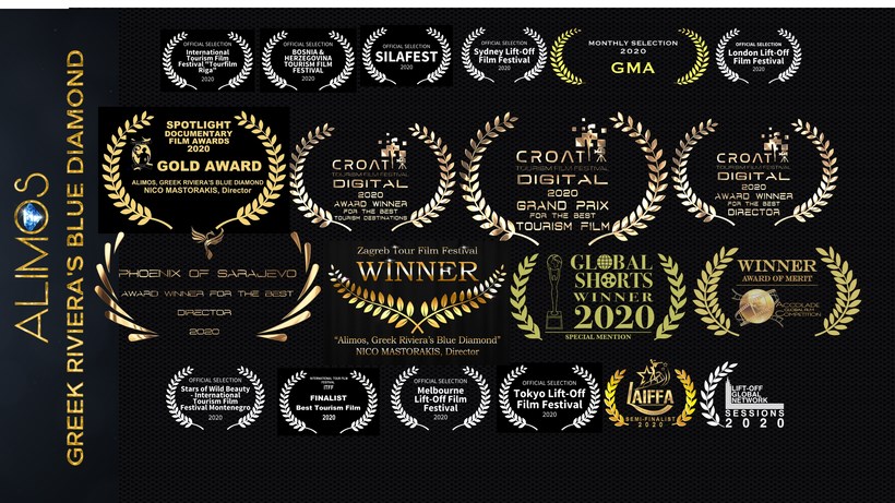 Το φιλμ του Νίκου Μαστοράκη «Alimos, Greek Riviera’s Blue Diamond» έχει αποσπάσει οκτώ διεθνή βραβεία, κερδίζοντας και 12 υποψηφιότητες σε άλλες διεθνείς παρόμοιες διοργανώσεις. Το φιλμ αποτελεί την ισχυρότερη προβολή του Αλίμου αλλά και της χώρας στη διεθνή σκηνή, ενώ σύμφωνα με τις κριτικές που έλαβε από τους οργανωτές των φεστιβάλ αυτών, χαρακτηρίστηκε «έξοχο, γεμάτο συναίσθημα, ασυνήθιστο σε σύλληψη και εκθαμβωτικό σε ομορφιά».