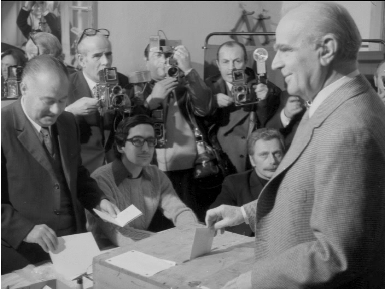 Πρόκειται για ένα απόσπασμα από ταινία επίκαιρων της εποχής, στο οποίο περιλαμβάνονται στιγμιότυπα από τη διεξαγωγή του δημοψηφίσματος, την άσκηση του εκλογικού δικαιώματος από τον Πρωθυπουργό Κωνσταντίνο Καραμανλή, την ανακοίνωση των αποτελεσμάτων και την τηλεοπτική μετάδοση του μηνύματος Καραμανλή προς τον ελληνικό λαό.