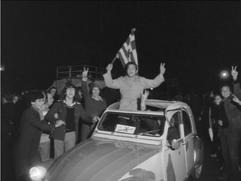 Ο Ο Κ. Καραμανλής απευθύνει τηλεοπτικό μήνυμα προς τον ελληνικό λαό, στο οποίο τονίζει ότι το πολιτειακό ζήτημα λύθηκε οριστικά μέσω του δημοψηφίσματος. Η κάμερα καταγράφει του πανηγυρισμούς των υποστηρικτών της αβασίλευτης δημοκρατίας στους δρόμους της Αθήνας.