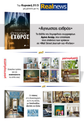 Σήμερα με τη Realnews: Άγνωστος Εχθρός, της Αμίνα Ακτάρ, μαζί Μαστορέματα και Maison & Decoration
