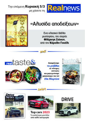 Σήμερα με τη Realnews: «Αλυσίδα αποδείξεων» της Κάρολιν Γουέλς – Μαζί Real Taste & Style και Drive Top cars 2023