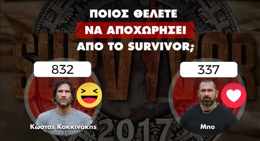 Στην ψηφοφορία που διοργανώνουν διάφορες σελίδες στο Facebook, το κοινό επέλεξε με διαφορά ως τον παίκτη που θέλει να αποχωρήσει και να επιστρέψει στην Ελλάδα τον… Κώστα Κοκκινάκη. Σε αυτήν την ψηφοφορία, έρχεται να προστεθεί και η τοποθέτηση του δημοσιογράφου, Χάρη Λεμπιδάκη στο Happy Day:«Όλα δείχνουν ότι αποχωρεί ο Κώστας Κοκκινάκης. Αν λάβουμε υπόψιν μας όλες αυτές τις ψηφοφορίες που γίνονται στα social media, δεν έχουν πέσει έξω ποτέ».