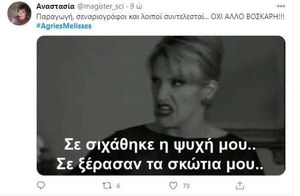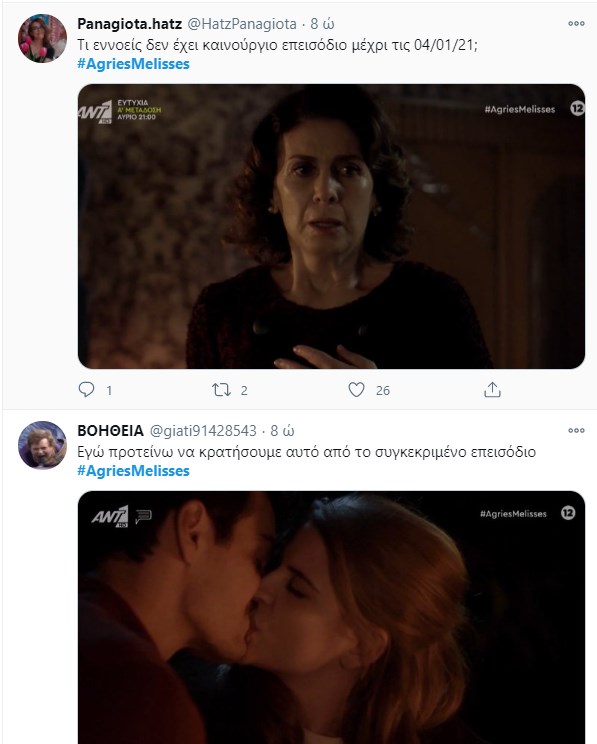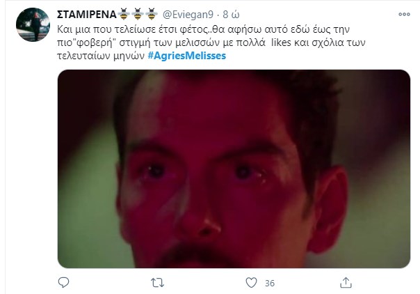 Κάθε βράδυ γίνεται χαμός στοTwitter με το επεισόδιο των “Άγριων Μελισσών“. Δεν θα μπορούσε να γίνει διαφορετικά για το τελευταίο επεισόδιο του 2020, το οποίο μάλιστα άφησε τους τηλεθεατές με την αγωνία για τη συνέχεια με την τελευταία σκηνή να συγκλονίζει. Πρόκειται για τη σκηνή που ο Βόσκαρης συναντά την Ελένη και προσπαθεί για άλλη μια φορά να την βιάσει. Ο εφιάλτης ζωντανεύει ξανά για την μεγαλύτερη από τις αδελφές Σταμίρη, αλλά δίνει μάχη με τον δυνάστη της για να αποφύγει την κακοποίηση της. Η επίθεση ήρθε τη στιγμή που Ελένη ήταν μόνη στο σπίτι κι εκείνος δεν έχασε την ευκαιρία να αποπειραθεί για μια ακόμη φορά να τη βιάσει. Στα τελευταία δευτερόλεπτα είδαμε την Ελένη να πιάνει ένα ξύλο προσπαθώντας να τον σταματήσει, μια σκηνή που μας θύμισε εκείνη την πρώτη σκηνή της σειράς με τον Σέργιο πριν βρεθεί δολοφονημένος. Η αγαπημένη σειρά του ΑΝΤ1 θα επιστρέψει στις 4 Ιανουαρίου και μέχρι τότε θα μείνουμε με την αγωνία για το τι θα συμβεί στη συνέχεια. Θα καταφέρει η Ελένη να γλιτώσει από τα χέρια του;
