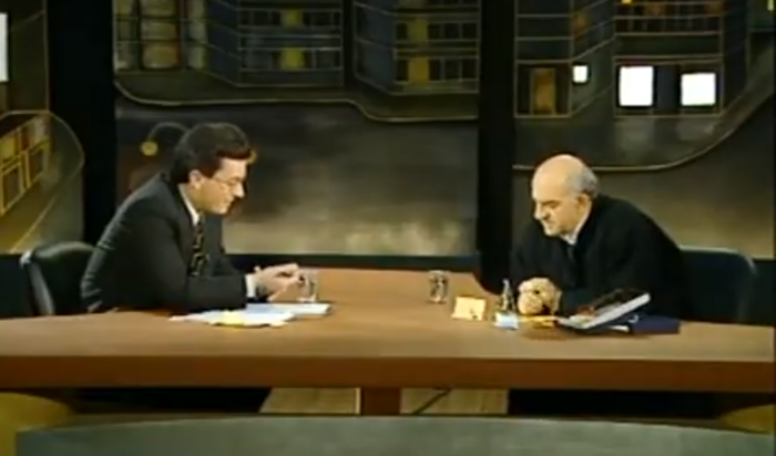 Η συνέντευξη προβλήθηκε στις 22/1/1998 από τον τηλεοπτικό σταθμό MEGA και το υλικό προέρχεται από το προσωπικό αρχείο του Νίκου Χατζηνικολάου.
