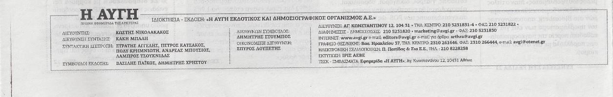 Η ταυτότητα της εφημερίδας “Η Αυγή” στο χθεσινό της φύλλο