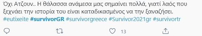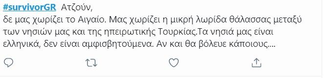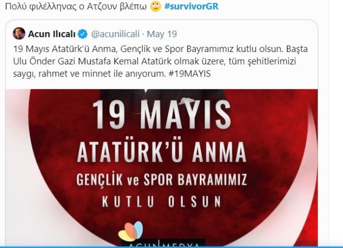 Σάλο προκάλεσε στα μέσα κοινωνικής δικτύωσης η τοποθέτηση του Ατζούν Ιλιτζαλί για τα ελληνοτουρκικά ζητήματα. Στο επεισόδιο του Survivor της Τετάρτης ο Ατζούν Ιλιτζαλί μίλησε για τις σχέσεις Ελλήνων και Τούρκων, για τις ομοιότητες των δύο λαών και για το Αιγαίο.