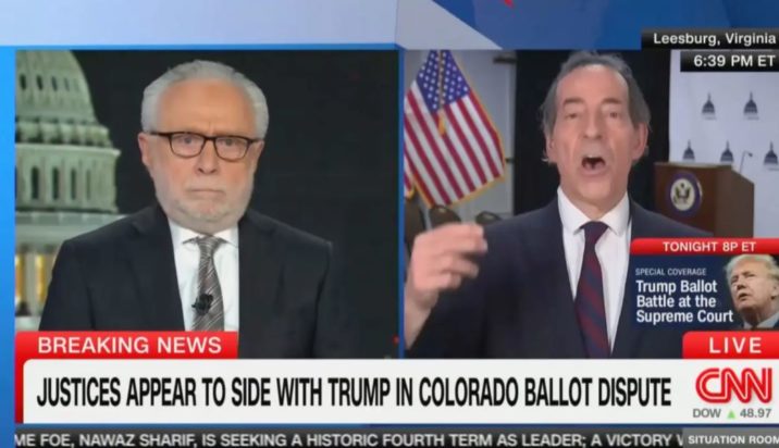 Καθώς ο Raskin (D-Md.) μιλούσε για τη διαμάχη στο Κολοράντο σχετικά με την εμφάνιση του Ντόναλντ Τραμπ στο ψηφοδέλτιο, ο Blitzer είχε μία σειρά από περίεργες εκφράσεις καθώς φαινομενικά προσπαθούσε να κρατηθεί για να μην κάνει εμετό στον αέρα.