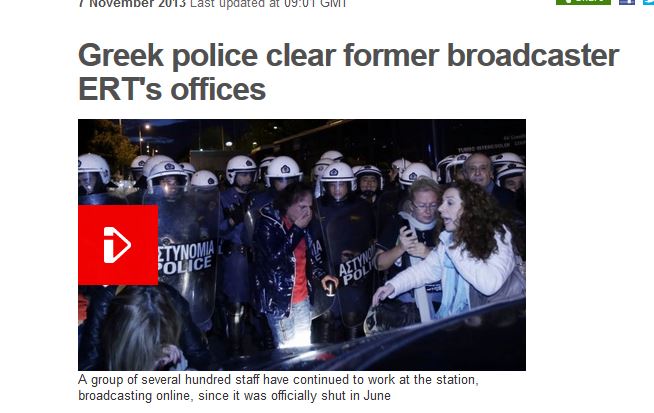 Η είδηση της επέμβασης των ΜΑΤ στο Ραδιομέγαρο έχει κάνει τον γύρο του κόσμου. Το μεγαλύτερο ειδησεογραφικό site της Βρετανίας, το ΒΒC, κάνει εκτενές ρεπορτάζ για το χρονικό της επιχείρησης στην ΕΡΤ.