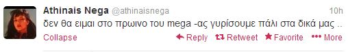 Η Αθηναΐδα Νέγκα μέσω του προσωπικού της λογαριασμού στο twitter, ξεκαθάρισε.