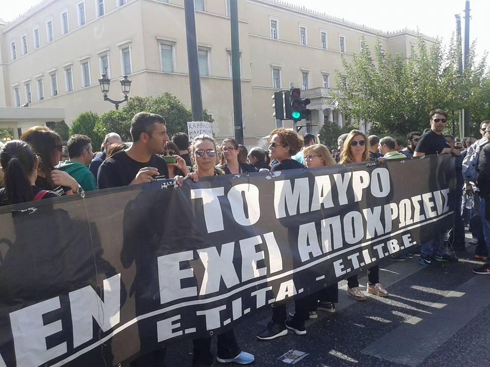Συγκέντρωση διαμαρτυρίας έξω από τη Βουλή πραγματοποιούν εργαζόμενοι στα Μέσα Ενημέρωσης.