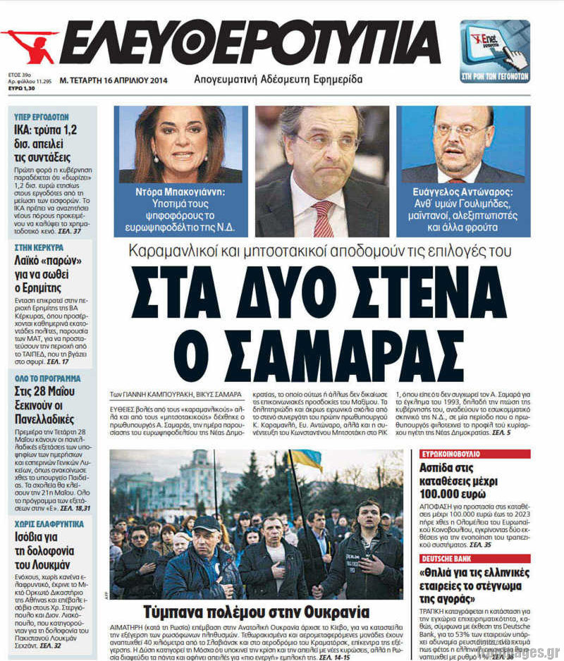 Δείτε το πρωτοσέλιδο της Ελευθεροτυπίας: