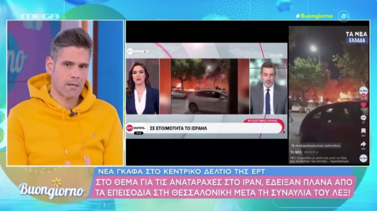 Μια νέα γκάφα σημειώθηκε στο δελτίο ειδήσεων του ΕΡΤNEWS, το απόγευμα της Κυριακής 11 Ιανουαρίου. Συγκεκριμένα, στο θέμα για τις αναταραχές στο Ιράν, έδειξαν πλάνα από επεισόδια στη Θεσσαλονίκη, που είχαν συμβεί ύστερα από συναυλία του ΛΕΞ.