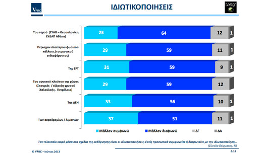 Αναφορικά με την ιδιωτικοποίηση της ΕΡΤ το 59% μάλλον διαφωνεί ενώ το 31% μάλλον συμφωνεί. Το 9% απάντησε “Δεν Γνωρίζω”, ενώ το 1% δεν απάντησε στην ερώτηση.