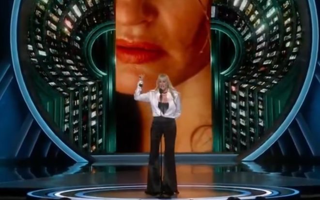Η ηθοποιός του «Kill Bill», Ντάριλ Χάνα, φώναξε «Slava Ukraine» καθώς ανέβαινε στη σκηνή για να παρουσιάσει το βραβείο Καλύτερου Μοντάζ.