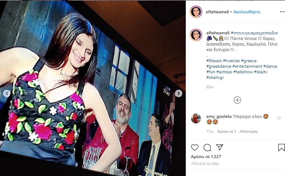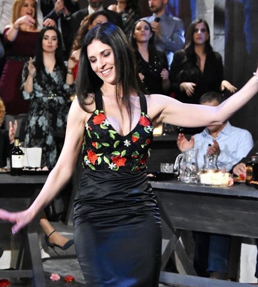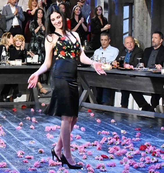 Η ηθοποιός χόρεψε ένα τσιφτετέλι υπό τους ήχους του τραγουδιού “Θα τα κάψω τα λεφτά μου”, καθώς η εκπομπή ήταν αφιερωμένη στον Πυθαγόρα. Η ηθοποιός ενσαρκώνει στη σειρά την Κατερίνα Μαρόγλου, σύζυγο ενός πολιτικού.