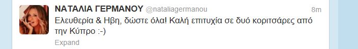 Με το ξεκίνημα του διαγωνισμού, οι επώνυμοι έστειλαν τις ευχές τους στην Ελευθερία και την Ηβη στο twitter…