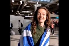Η Αμάντα Γεωργιάδη, που θα μας εκπροσωπήσει με το τραγούδι ”Die Together”, έφτασε στο αεροδρόμιο «Ελευθέριος Βενιζέλος» φορώντας την ελληνική σημαία.