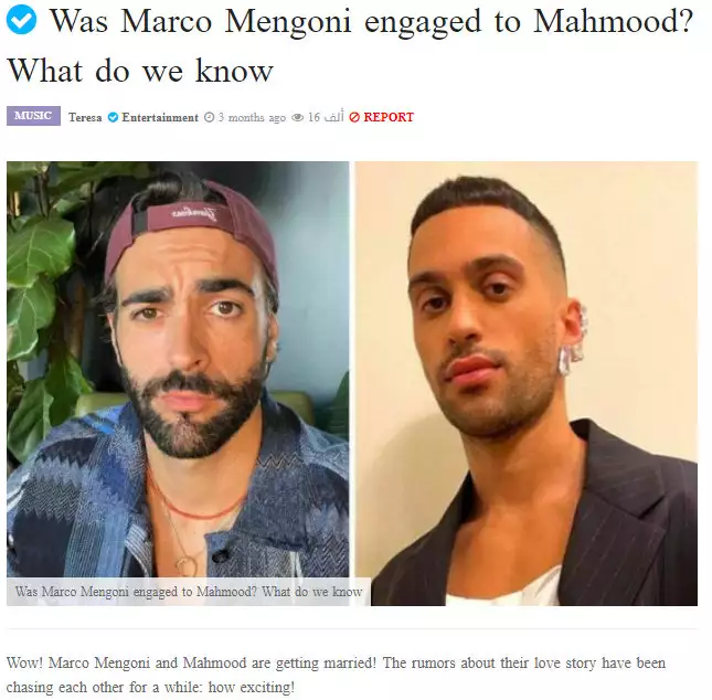Από το βράδυ του τελικού, κυκλοφορούν στα διεθνή ΜΜΕ δημοσιεύματα για την προσωπική του ζωή. Σύμφωνα με αυτά, ο Marco Mengoni φέρεται να είναι σε σχέση με τον γνωστό τραγουδιστή Mahmood, ο οποίος έχει συμμετάσχει δύο φορές στην Eurovision (2019 και 2022). Μάλιστα το 2019 είχε κατακτήσει τη 2η θέση του μουσικού διαγωνισμού.