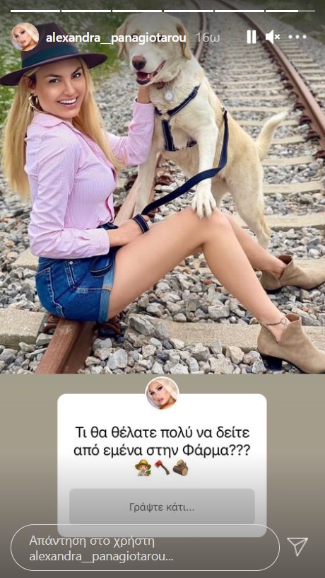 Ο λόγος για την Αλεξάνδρα Παναγιώταρου. Η πρώην παίκτρια του My Style Rocks με stories στο Instagram απάντησε στις συγκεκριμένες φήμες και αποκάλυψε πως τις τελευταίες ημέρες δεν είναι τόσο ενεργή στα social media επειδή ετοιμάζεται να μπει στη «Φάρμα».