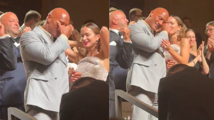 Dwayne Johnson gets emotional as The Smashing Machine receives a 15-minute standing ovation at the Venice Film Festival.