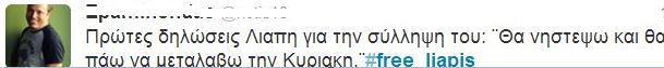 Ήδη έχει δημιουργηθεί hashtag με το όνομα του πρώην υπουργού αλλά και το #free_liapis.