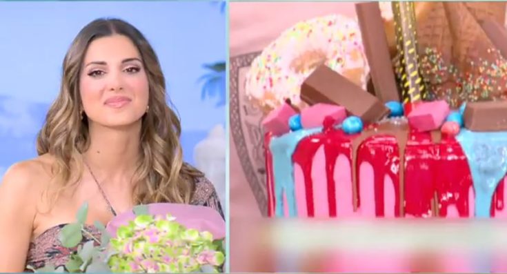 Οι συντελεστές του “Happy Day” είχαν ετοιμάσει λαμπερές εκπλήξεις για την παρουσιάστρια. Το πλατό γέμισε με μπαλόνια και εντυπωσιακά γλυκά ενώ προβλήθηκε και ένα βίντεο με στιγμές από την ζωή και την καριέρα της.