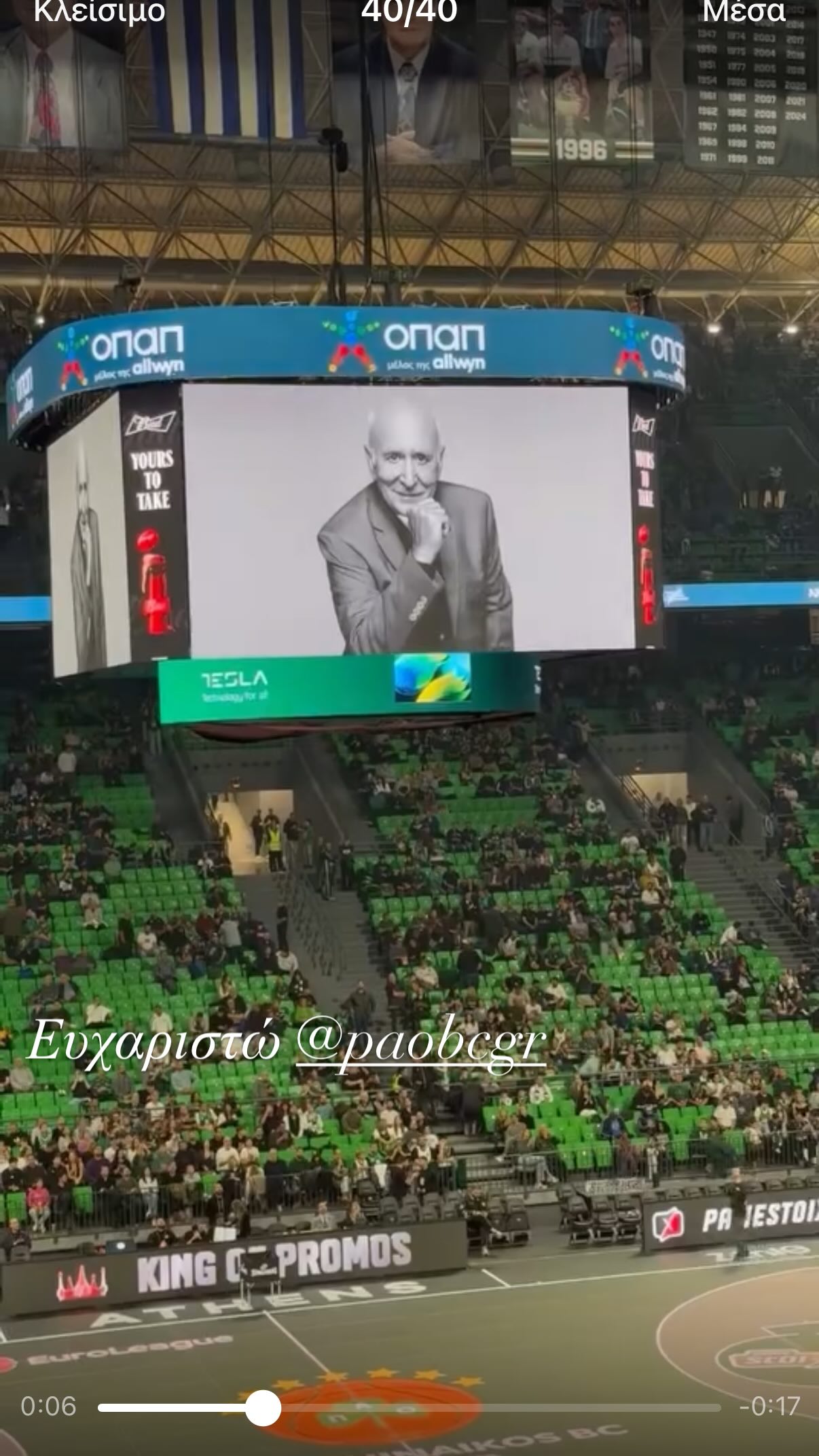 Στην κεντρική οθόνη του γηπέδου προβλήθηκαν χαρακτηριστικές στιγμές από την εκπομπή «Καλημέρα Ελλάδα», τιμώντας έτσι τη μακρά πορεία και την προσφορά του Γιώργου Παπαδάκη στην ενημέρωση. Ο Φοίβος Παπαδάκης, με μια λιτή αλλά ουσιαστική φράση, έγραψε: «Ευχαριστώ Παναθηναϊκέ».