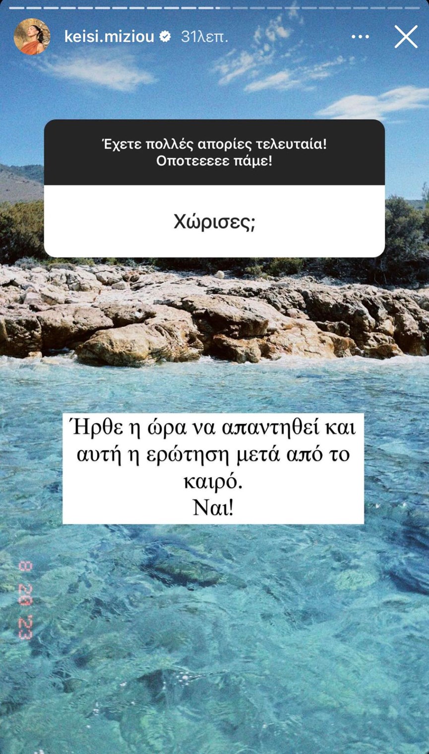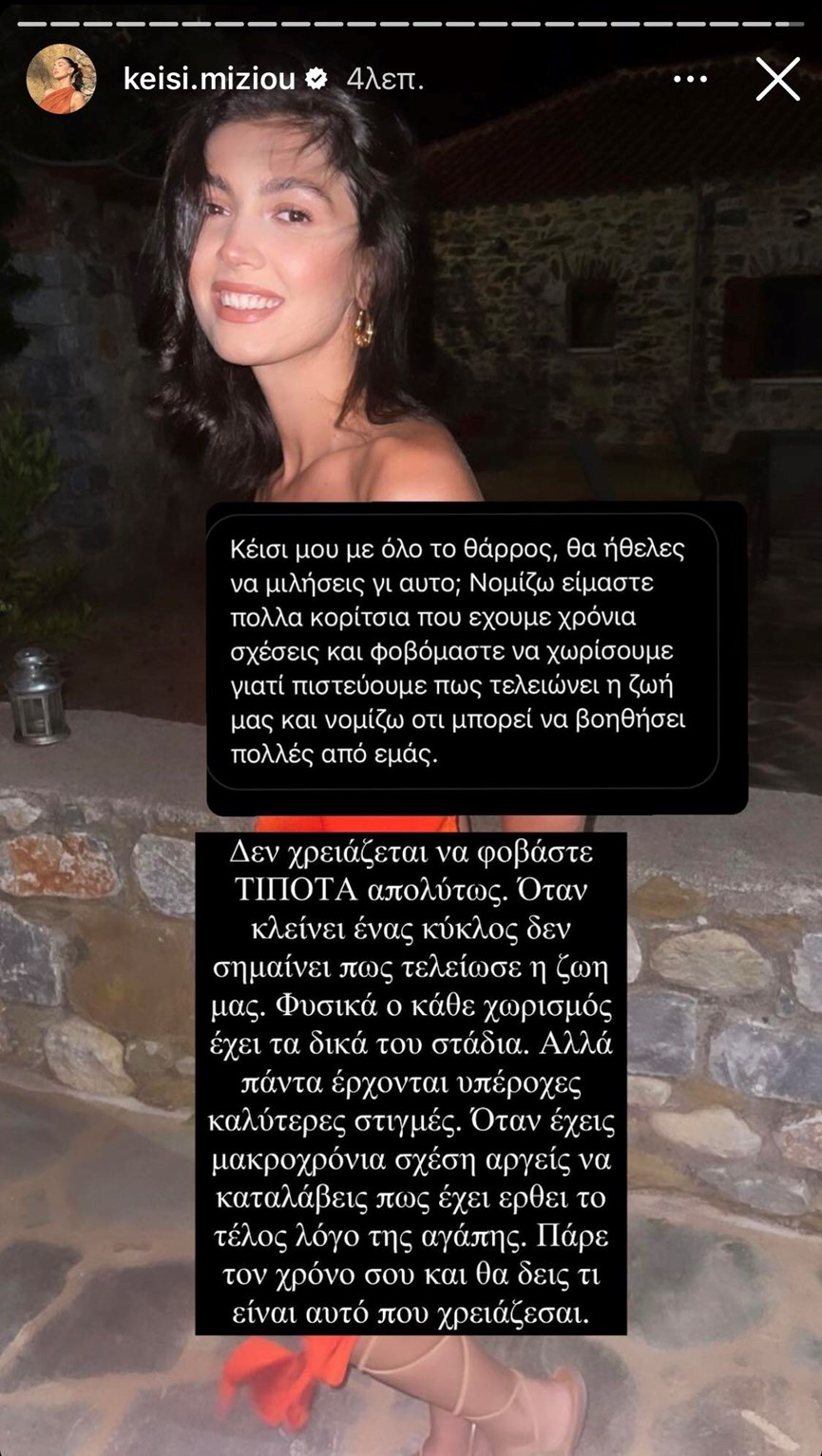 Τον χωρισμό της, έπειτα από αρκετά χρόνια σχέσης αποφάσισε να γνωστοποιήσει μοντέλο που γνωρίσαμε στο GNTM, μέσα από το προφίλ που διατηρεί στο instagram. Ο λόγος για την Κέισι Μίζιου, η οποία ανακοίνωσε πως χώρισε από τον σύντροφό της Δημήτρη Τρίτο.