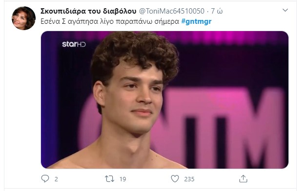 Έξαλλοι οι χρήστες του Twitterμε το χθεσινό επεισόδιο του GNTM και ειδικά με τον “γύπα”, Δημοσθένη και τον τρόπο που έβγαλε τελικά εκτός παιχνιδιού την Ξένια. Το θέμα της χθεσινής δοκιμασίας ήταν ο γάμος και τα μοντέλα φωτογραφήθηκαν σε ζευγάρια με διαφορετικά concept. Ο Δημοσθένης είχε ζητήσει να είναι ζευγάρι με την Ξένια, θεωρώντας ότι ταιριάζουν αλλά τελικά είχαν το χειρότερο “κλικ”. Οι αντιδράσεις των χρηστών των social media ήταν έντονες καθώς αν και είπε ότι αν βρεθούν στους προτεινόμενους θα ζητήσει να φύγει εκείνος και να μείνει η Ξένια, τελικά έγινε το ακριβώς αντίθετο.