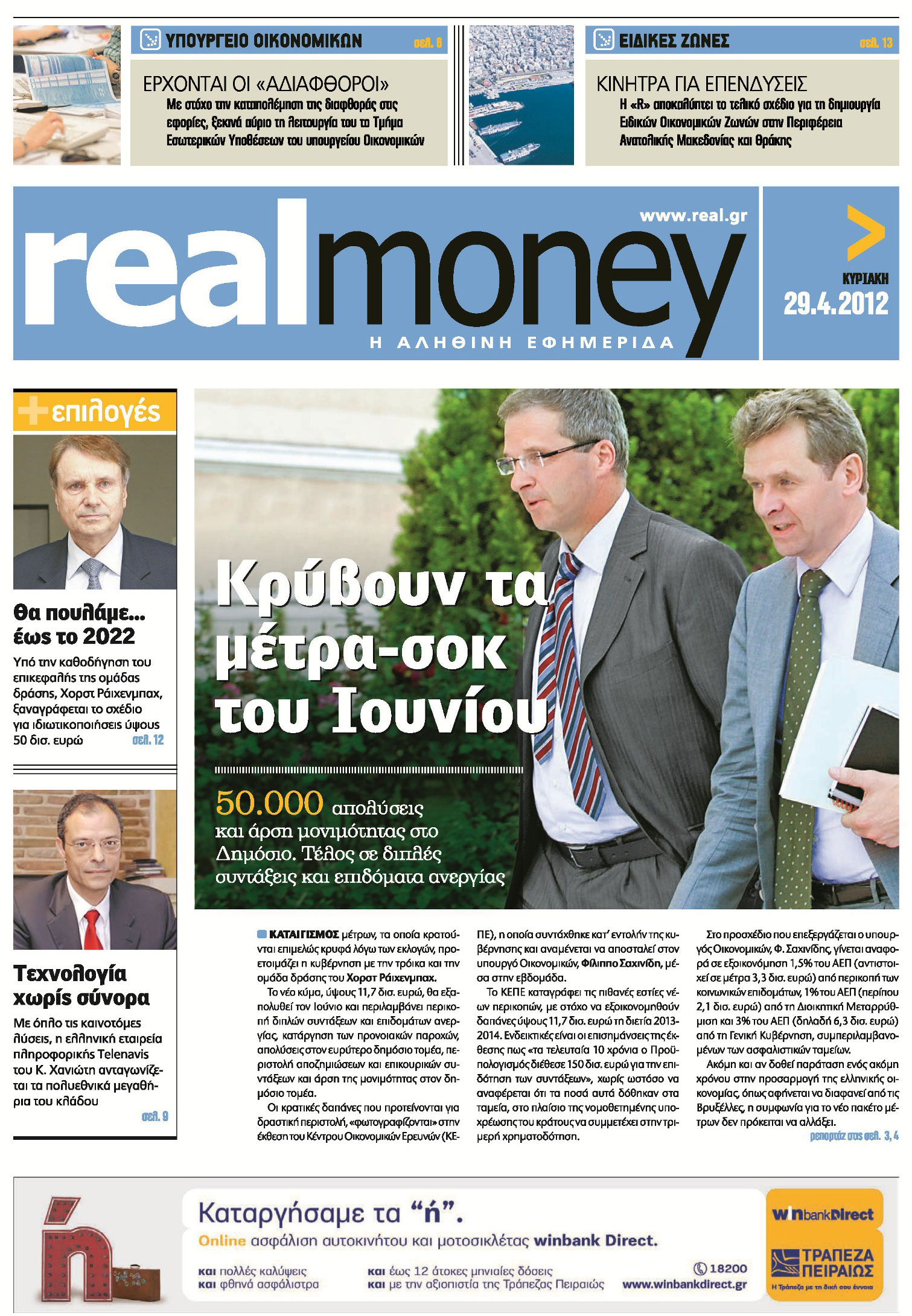 Σαράντα χιλιάδες ευρώ μετρητά χαρίζει συνολικά, σε 20 τυχερούς η Real News, που κυκλοφορεί αυτή την Κυριακή.Στη Real News θα βρείτε το δεύτερο CD της συλλογής της Χάρις Αλεξίου, με τις επιτυχίες «Έλα πάρε με», «Η γκαρσόνα», «Κίτρινη πόλη» και «Το Ειρηνάκι». Επίσης την ταινία «Και οι επτά ήταν ατρόμητοι» με τον Χάρισον Φορντ και τον Τζέιμς Κάαν.Διαβάστε το πρωτοσέλιδο της Real Life, της Real Money, της Real Planet και της Real Sports.
