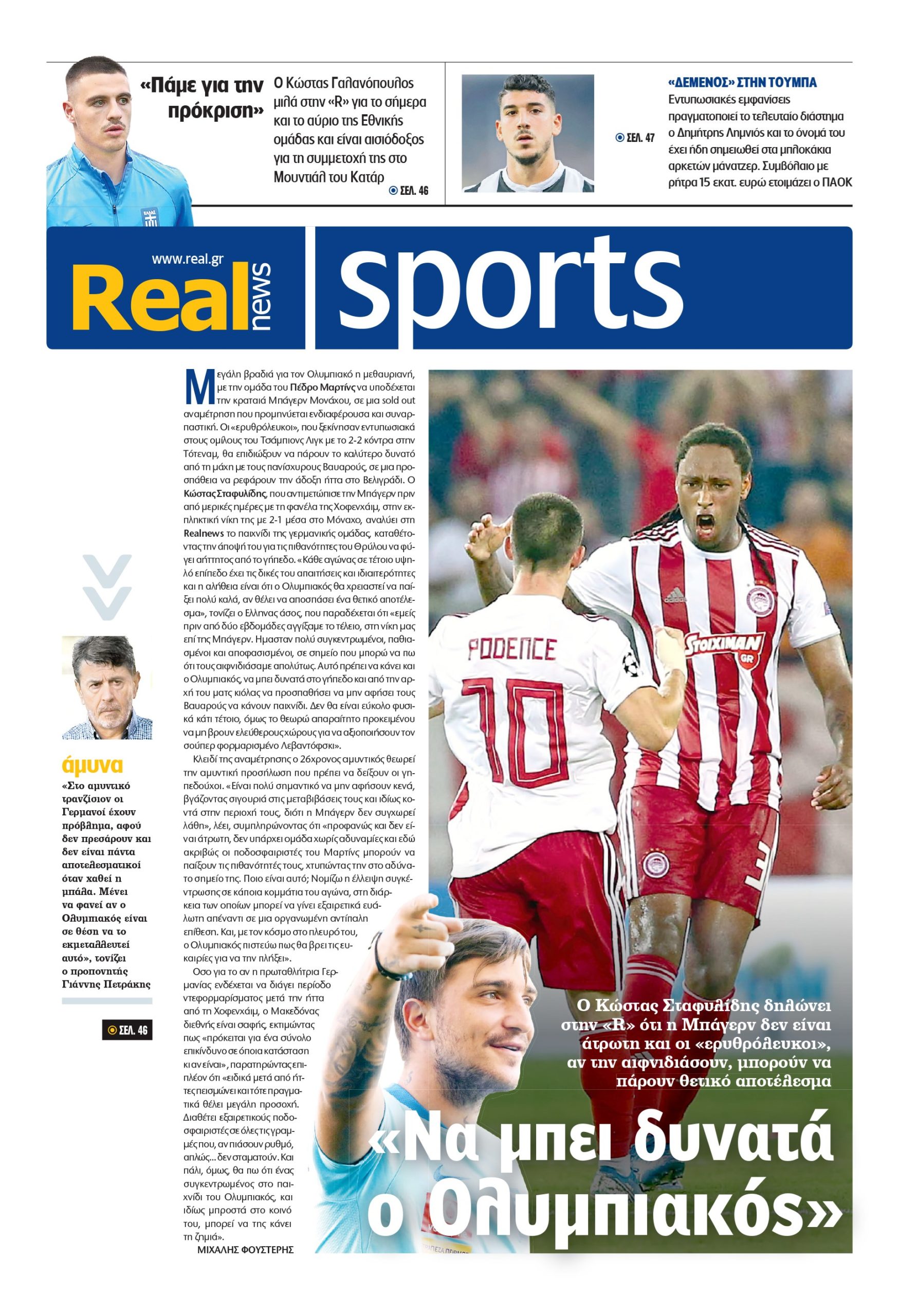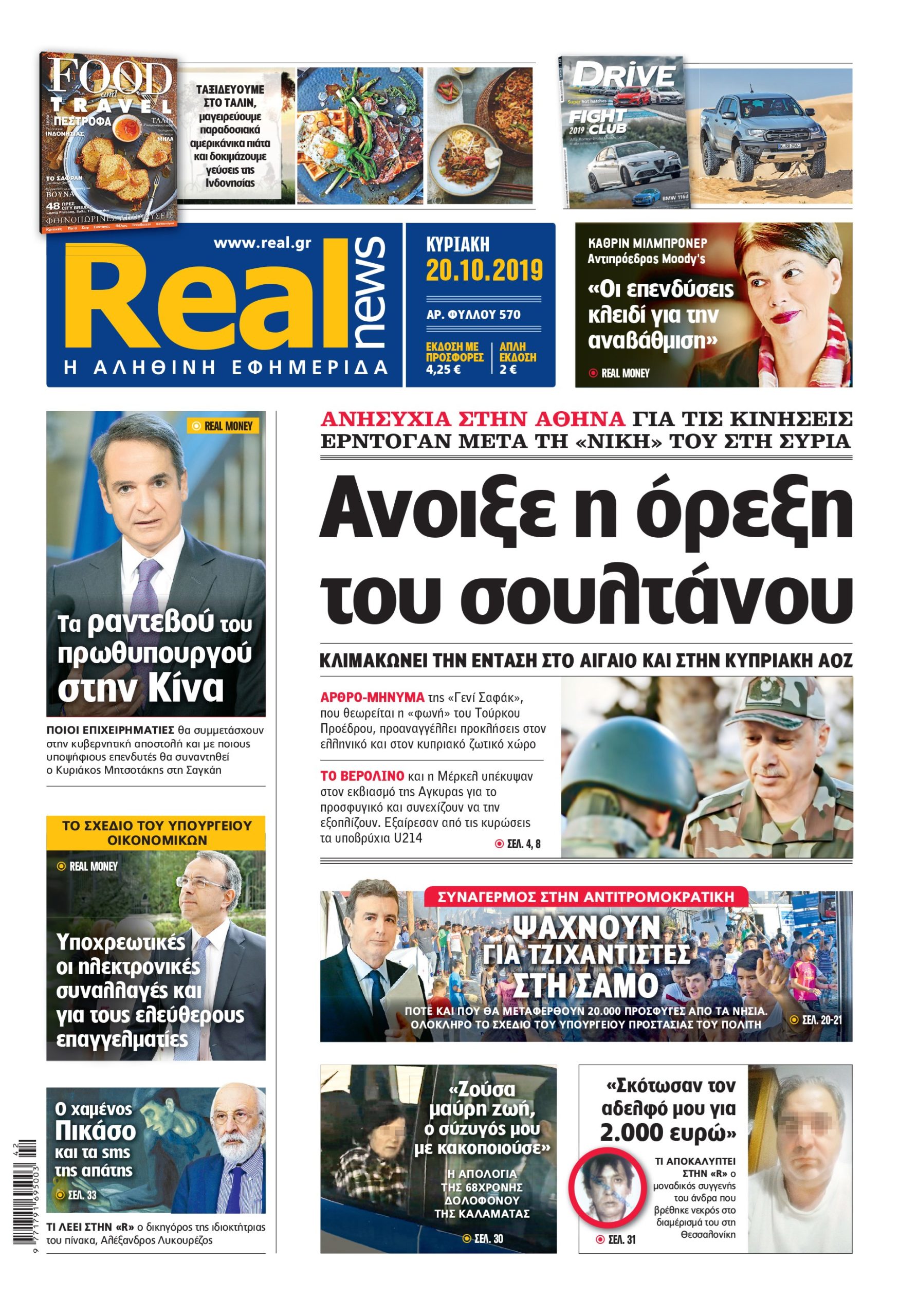Με τίτλο: «Ανοιξε η όρεξη του σουλτάνου», κυκλοφορεί σήμερα η Realnews.