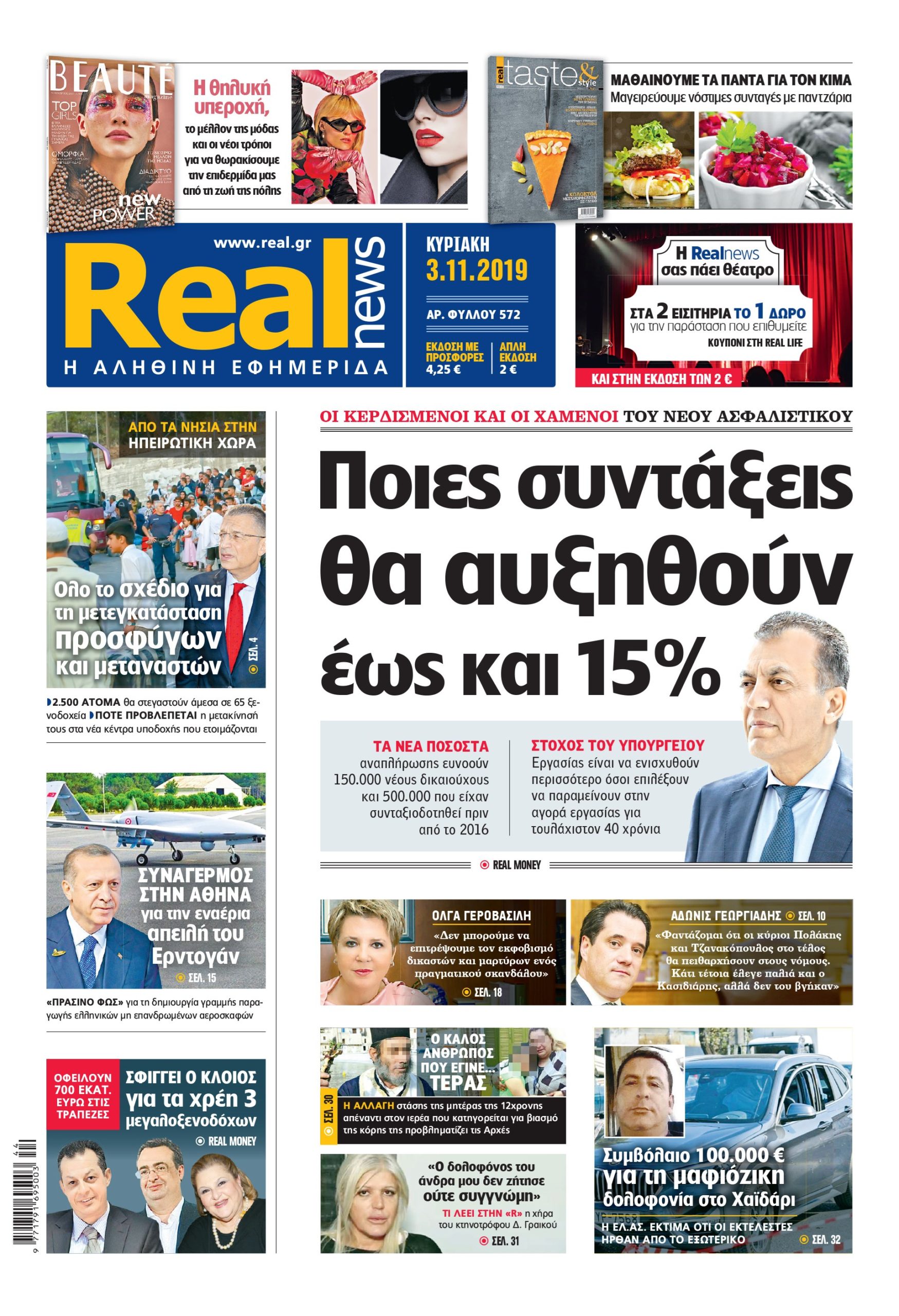 Με τίτλο: «Ποιες συντάξεις θα αυξηθούν έως και 15%», κυκλοφορεί σήμερα η Realnews.