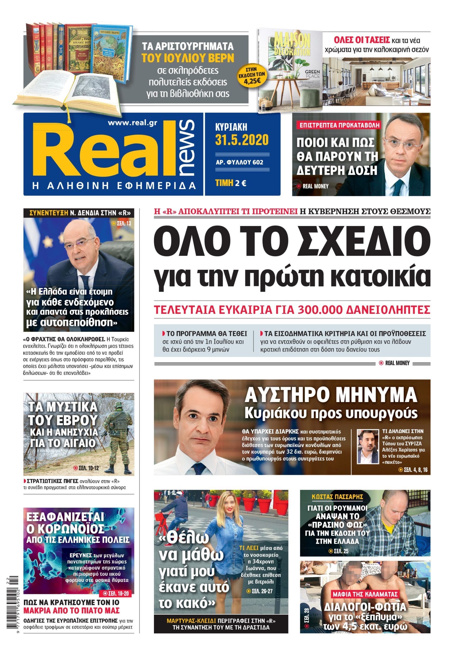 Με τίτλο: «Ολο το σχέδιο για την πρώτη κατοικία» κυκλοφορεί, σήμερα η Realnews. Η εφημερίδα αποκαλύπτει τι προτείνει η κυβέρνηση στους θεσμούς.