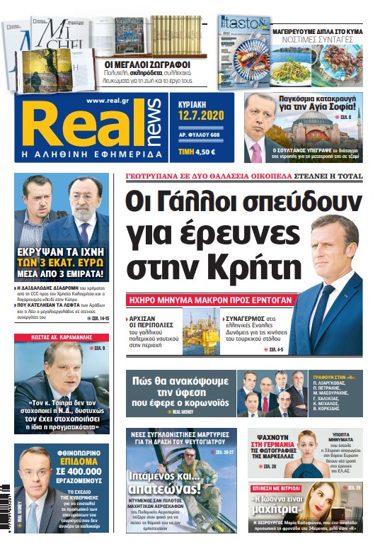 Με τίτλο: «Οι Γάλλοι σπεύδουν για έρευνες στην Κρήτη» κυκλοφορεί, σήμερα, η Realnews