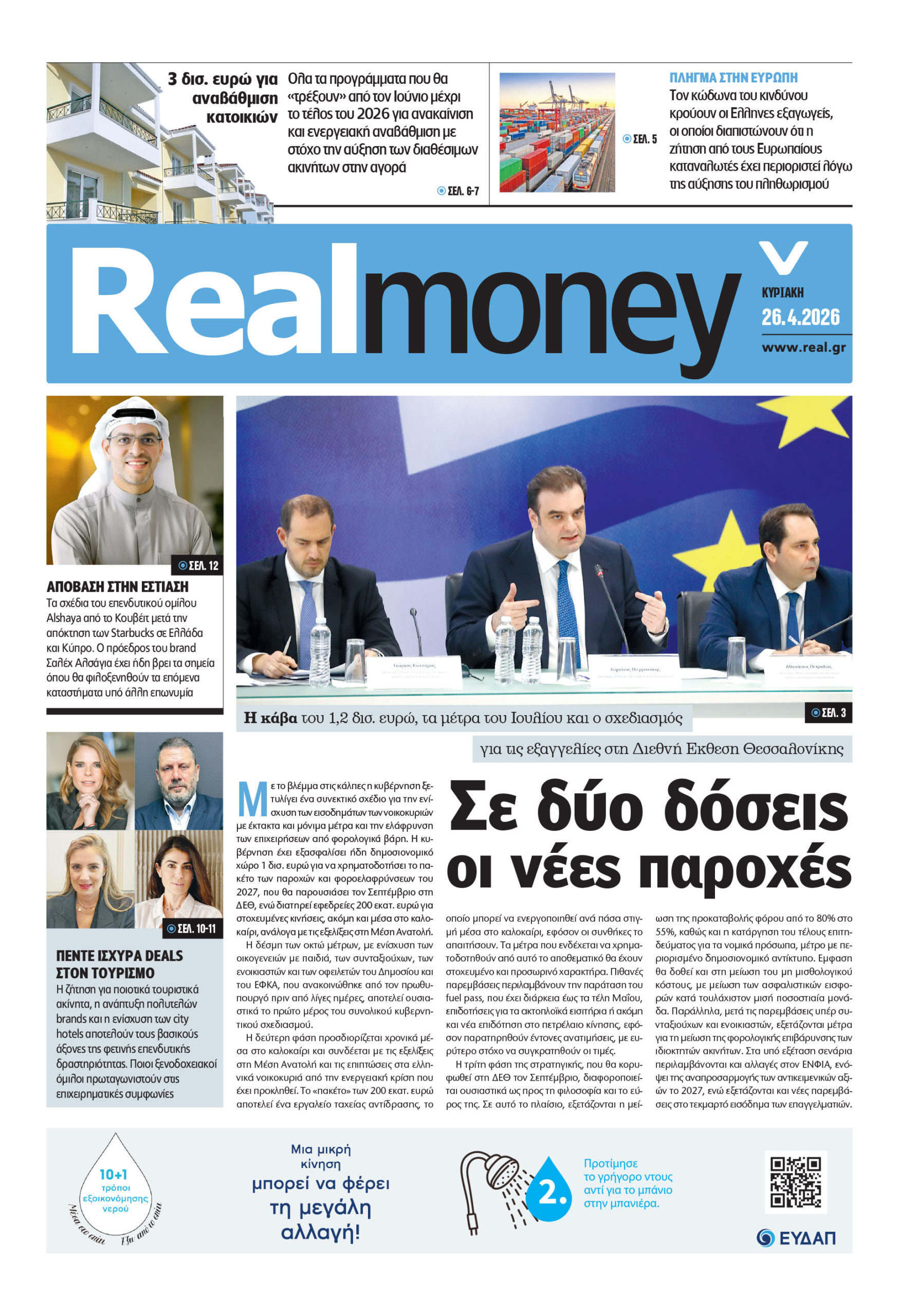 – Ολα τα νέα προγράμματα για τη στέγη. Ποιες δράσεις κρατικής χρηματοδότησης θα «τρέξουν» από τον Ιούνιο έως το τέλος του έτους. Στις αρχές του καλοκαιριού θα ανοίξει το νέο «Ανακαινίζω», με την επιδότηση να κινείται από 80% έως 95%. Αφορά παλαιές κατοικίες και η ενίσχυση θα φτάνει έως τα 300 ευρώ το τετραγωνικό μέτρο. Για το δεύτερο εξάμηνο δρομολογείται το «Εξοικονομώ 2026», που αναμένεται να καλύψει 62.000 νοικοκυριά και 10.000 πολύ μικρές επιχειρήσεις. Τα κριτήρια και οι δικαιούχοι.