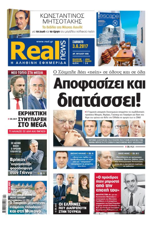 Με τίτλο: “Αποφασίζει και διατάσσει!” κυκλοφορεί η Realnews, η οποία αυτήν την εβδομάδα βρίσκεται στα περίπτερα από το Σάββατο έως και τη Δευτέρα του Αγίου Πνεύματος.