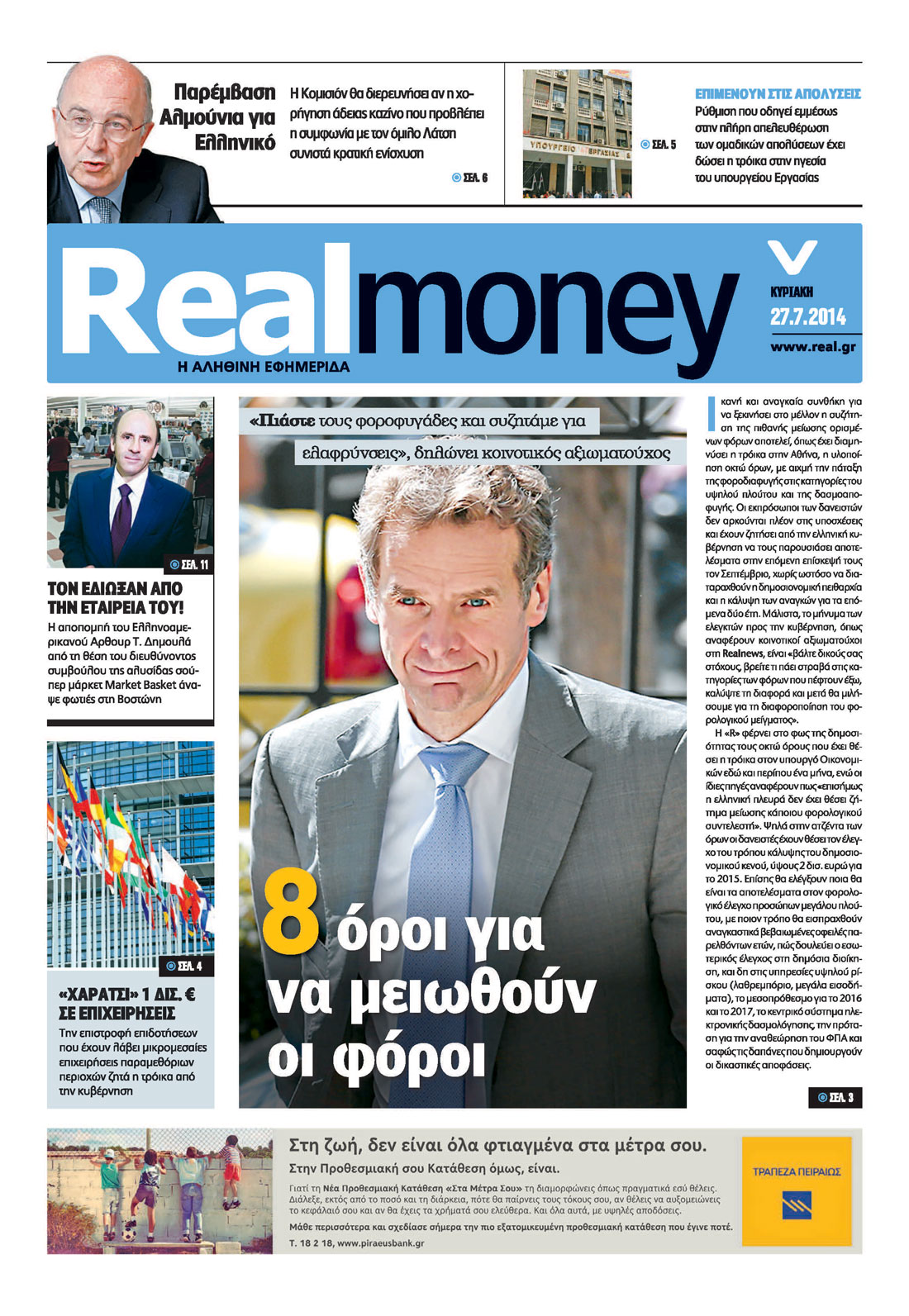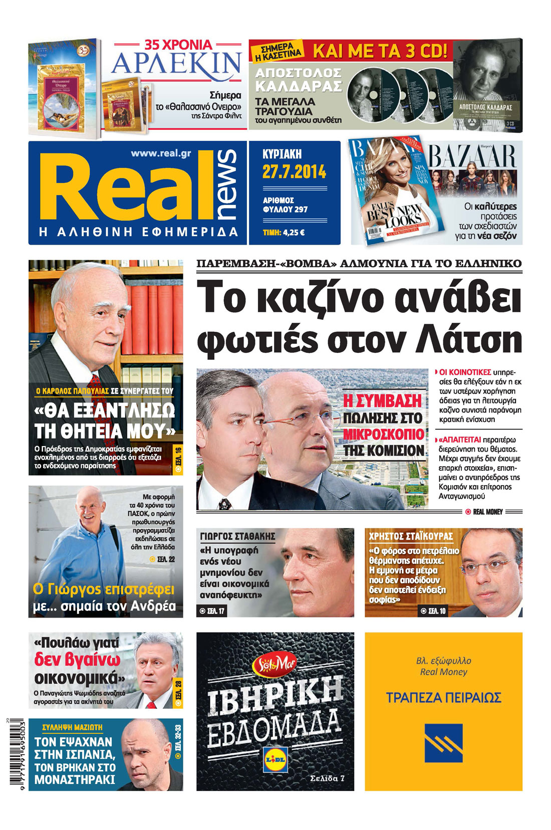 Με τίτλο: “Το καζίνο ανάβει φωτιές στον Λάτση” κυκλοφορεί σήμερα η Realnews, η οποία αναφέρεται στην “παρέμβαση – “βόμβα” Αλμούνια για το Ελληνικό”.