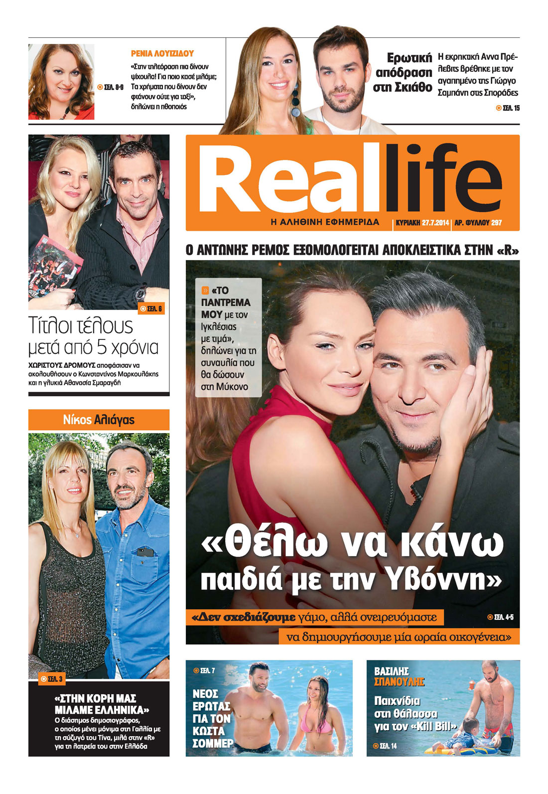 – Ο Αντώνης Ρέμος εξομολογείται αποκλειστικά στην “R”: “Θέλω να κάνω παιδιά με την Υβόννη”. “Δεν σχεδιάζουμε γάμο, αλλά ονειρευόμαστε να δημιουργήσουμε μία ωραία οικογένεια”. “To πάντρεμά μου με τον Ιγκλέσιας με τιμά”, δηλώνει για τη συναυλία που θα δώσουν στη Μύκονο.