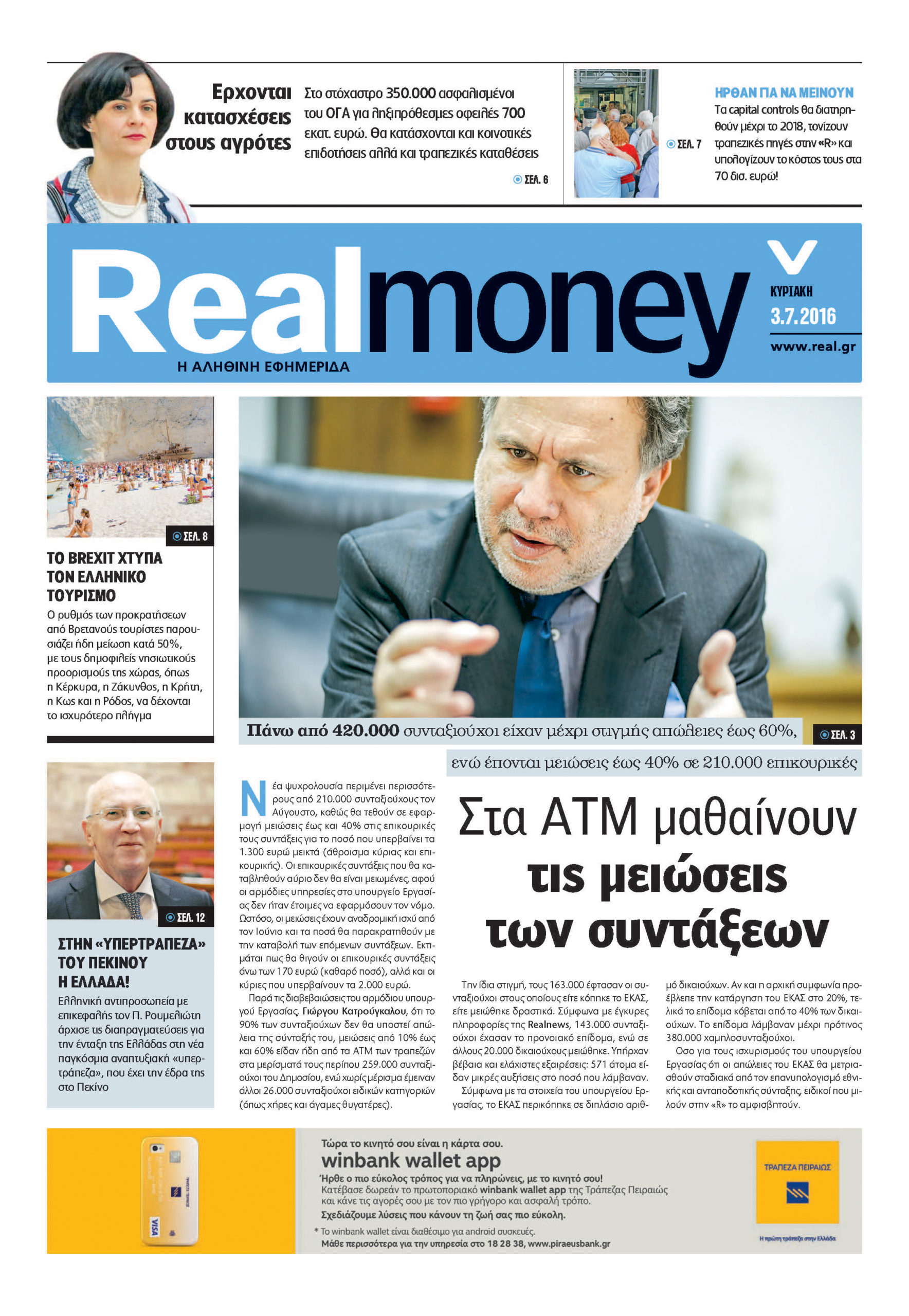 Με τίτλο: “Πόλεμος για τα «κλειδιά» των επιχειρήσεων” κυκλοφορεί σήμερα η Realnews, η οποία αναφέρεται στο “επιθετικό σχέδιο αφελληνισμού των τραπεζών”. Η εφημερίδα επισημαίνει: “Στη γραμμή της τρόικας και μεγάλα funds που συμμετέχουν στα μετοχικά κεφάλαια Εθνικής, Πειραιώς, Alpha, Attica Bank”, ενώ σημειώνει ότι μπαίνουν “στο στόχαστρο των δανειστών τα «κόκκινα» δάνεια εταιρειών στρατηγικής σημασίας από τους κλάδους του τουρισμού, των τροφίμων, της υγείας, της ακτοπλοΐας, των ιχθυοκαλλιεργειών και της αγροτικής οικονομίας”. Επίσης, σύμφωνα με το ρεπορτάζ της Realnews, “Πολωνός είναι ο επικρατέστερος για την ηγεσία του Ταμείου Χρηματοπιστωτικής Σταθερότητας”.