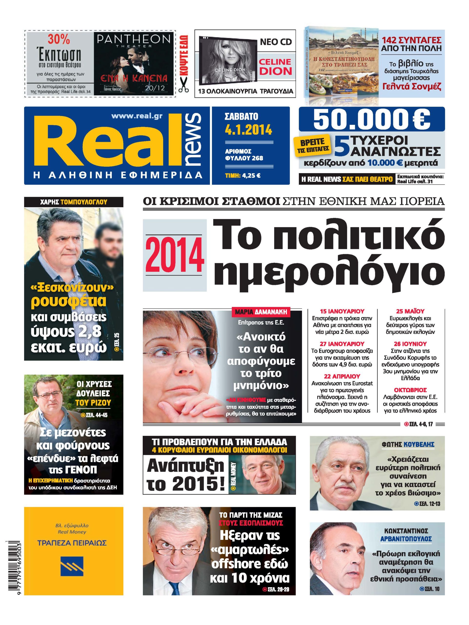 Με τίτλο: “2014 Το πολιτικό ημερολόγιο” κυκλοφορεί η Realnews, η οποία βρίσκεται στα περίπτερα μέχρι και σήμερα Δευτέρα.