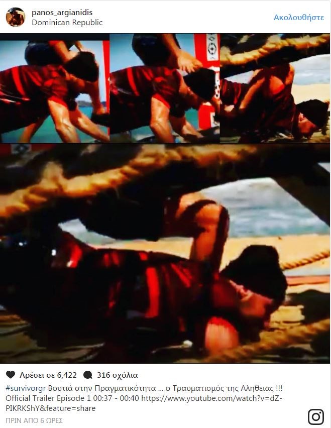 Μια μυστηριώδης ανάρτηση του Πάνου Αργιανίδη στον προσωπικό λογαριασμό του στο Instagram, έχει προκαλέσει ερωτήματα για τον τρόπο που εξελίχθηκαν τα πράγματα στο Survivor, σε σχέση με όσα είδαμε στις οθόνες μας.Συγκεκριμένα, ο μάνατζερ ράγκμπι ανέβασε μια φωτογραφία και ένα βίντεο από το πρώτο αγώνισμα, στο οποίο φαίνεται να βρίσκεται περίπου στα μέσα του στίβου, παίζοντας απέναντι στον Κώστα Κοκκινάκη.Στο πρώτο όμως επεισόδιο, παρακολουθήσαμε τον παίκτη να τραυματίζεται και να πέφτει στο έδαφος λίγα μόλις μέτρα μετά την αφετηρία.