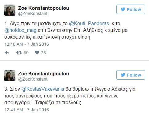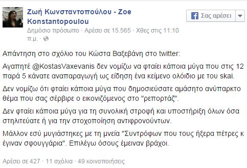 Μέσω των λογαριασμών της στα social media η Ζωή Κωνσταντοπούλου απάντησε στο δημοσίευμα της ιστοσελίδας κάνοντας λόγο για «συκοφαντίες και κατ’ εντολή στοχοποίηση».
