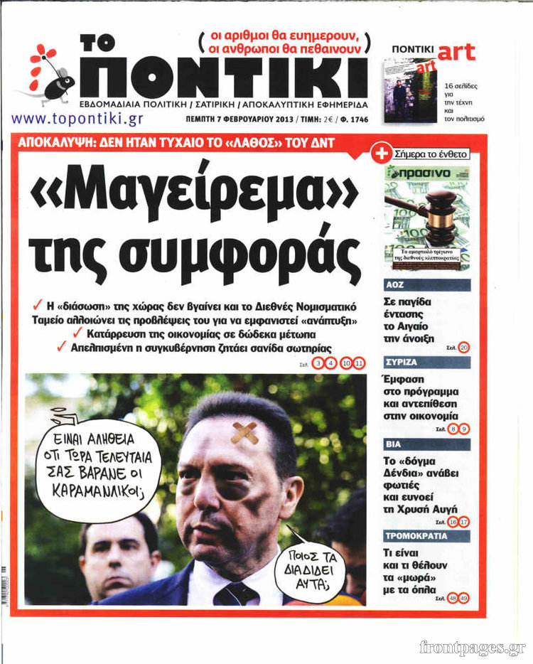 Η εφημερίδα “Το Ποντίκι” Enikos Newsroom 08:55, Πέμπτη 07 Φεβρουαρίου 2013 Media Η εφημερίδα “Το Ποντίκι” ΕΦΗΜΕΡΙΔΑ ΤΟ ΠΟΝΤΙΚΙ ΕΦΗΜΕΡΙΔΕΣ ΠΡΩΤΟΣΕΛΙΔΑ Μοιράσου το: σχολίασε κι εσύ (0 σχόλια) Ακολουθήστε το enikos.gr στο Google News και μάθετε πρώτοι όλες τις ειδήσεις Δείτε όλες τις τελευταίες ειδήσεις από την Ελλάδα και τον Κόσμο στο enikos.gr Ειδήσεις Ροή Ειδήσεων 3 ώρες πριν Με μπλόκα η έξοδος των εκδρομέων για τα Χριστούγεννα – Οι αγρότες αναδιατάσσουν τα τρακτέρ τους 1 ώρα πριν Κωνσταντινούπολη: Ελληνίδα έπεσε θύμα ερωτικής απάτης και έχασε 60.000 ευρώ – Η παγίδα που της έστησε ο «Μουράτ από τον Λίβανο» 2 ώρες πριν Ακρίβεια: Μεγάλη η «ψαλίδα» από το χωράφι στο ράφι – Σημαντικές ανατιμήσεις σε βασικά αγαθά 1 ώρα πριν Αττική: Παράτησε Lamborghini σε στάση λεωφορείου και έφυγε με τα πόδια για να αποφύγει μπλόκο της Τροχαίας 1 ώρα πριν Βινς Ζαμπέλα: Σκοτώθηκε σε τροχαίο ο συνδημιουργός του «Call of Duty» – Βίντεο-σοκ από την πρόσκρουση της κόκκινης Ferrari του 56 λεπτά πριν Αυτά τα 4 ζώδια έχουν πολλά να περιμένουν μετά τη σημερινή ημέρα – «Έρχονται υπέροχα νέα» 3 ώρες πριν Ανακαλύφθηκε μωσαϊκό της ύστερης αρχαιότητας με ελληνική επιγραφή 2 ώρες πριν Ανακάλυψε την απιστία της συζύγου του με τον πρώην της και ζήτησε διαζύγιο – «Δεν σκοπεύω να την βοηθήσω οικονομικά» 3 ημέρες πριν Enerwave: Το νέο «ρεύμα» στη λιανική ενέργειας που αλλάζει την εμπειρία του καταναλωτή 52 δευτερόλεπτα πριν Πλεύρης: Με ενόχλησαν τα φωτορυθμικά στην είσοδο της εκκλησίας και ο Δούκας με αποκάλεσε ακροδεξιό και σκοταδιστή 6 λεπτά πριν Εντοπίστηκαν όπλα σε σπίτι στα Άνω Λιόσια – 3 συλλήψεις 11 λεπτά πριν Euroleague: «Αντίο» στο 2025 με νίκη εκτός έδρας θέλει ο Παναθηναϊκός – Η ώρα του αγώνα με τη Ζαλγκίρις 16 λεπτά πριν Τραμπ: Στο πλευρό του Μπιλ Κλίντον μετά τη δημοσιοποίηση των αρχείων Έπσταϊν – «Δεν μου αρέσουν οι φωτογραφίες που τον απεικονίζουν» 21 λεπτά πριν Αγρότες: Ανοίγουν τα ρεύματα κυκλοφορίας στα τελωνεία Ευζώνων και Νίκης – Συμβολικός αποκλεισμός στον Προμαχώνα ENIKOS NETWORK Πάρκινσον: Ο χορός μπορεί να καθυστερήσει την εξέλιξη της νόσου – Πόσα λεπτά αρκούν Ποια συμπτώματα έχει το μίνι εγκεφαλικό – Μπορεί να εμφανιστούν ακόμα και μήνες πριν από ένα βαρύ επεισόδιο ΤτΕ: Τι αναφέρει η νέα ενδιάμεση έκθεση νομισματικής πολιτικής για επιτόκια, καταθέσεις και πιστωτική επέκταση Προκήρυξη ΑΣΕΠ για 2.217 μόνιμες θέσεις στο Δημόσιο: Ποιοι μπορούν να υποβάλουν ένσταση και μέχρι τι ώρα Ο Google Assistant θα παραμείνει λίγο περισσότερο για ορισμένους χρήστες Android Τεστ προσωπικότητας: Το βάζο που θα επιλέξετε αποκαλύπτει πώς λύνετε προβλήματα στη ζωή σας περισσότερα 10:34 , Τρίτη 23 Δεκεμβρίου 2025 Την Κυριακή με τη Realnews: Ό,τι και αν αγοράσεις, σκανάρεις και κερδίζεις! Την Κυριακή με τη Realnews: Ό,τι και αν αγοράσεις, σκανάρεις και κερδίζεις! Με το PADU app, το... 07:01 , Τρίτη 23 Δεκεμβρίου 2025 Την Κυριακή με τη Realnews: Δωροεπιταγή 10€ Την Κυριακή με τη Realnews: Δωροεπιταγή 10€ Δωροεπιταγή αξίας 10€ για αγορές άνω των 60€ από τ... 20:16 , Δευτέρα 22 Δεκεμβρίου 2025 «Το παιδί από την αρχή»: Special edition επεισόδια της επιτυχημένης σειράς αρχίζουν από σήμερα στην ΕΡΤ1 «Το παιδί», η ξεχωριστή σειρά της ΕΡΤ1 με στοιχεία μαύρης κωμωδίας, που φέρει την υπογραφή του... 19:41 , Δευτέρα 22 Δεκεμβρίου 2025 Porto Leone: Στη γειτονιά με τα κόκκινα φανάρια – Η Αλεξάνδρα ανακαλύπτει το μυστικό της Γαλήνης και της στήνει παγίδα Απόψε στις 22:30 στον Alpha η συγκλονιστική συνέχεια της δραματικής σειράς του Apha