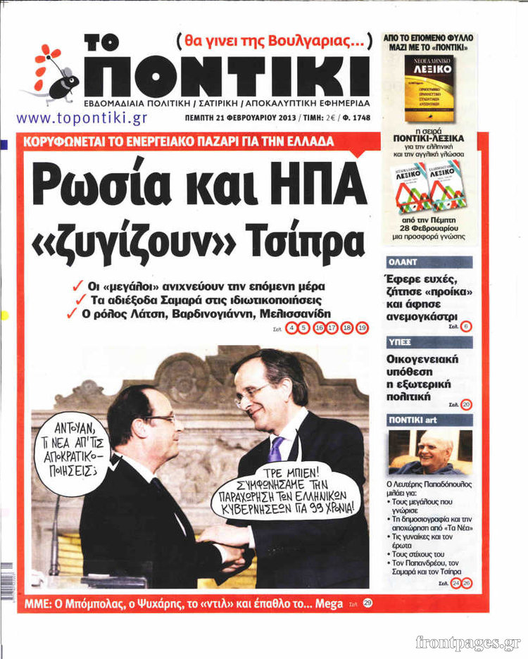 Η εφημερίδα “Το Ποντίκι” Enikos Newsroom 09:37, Πέμπτη 21 Φεβρουαρίου 2013 Media Η εφημερίδα “Το Ποντίκι” Τα πρωτοσέλιδο της εφημερίδας “Το Ποντίκι”. ΕΦΗΜΕΡΙΔΑ ΤΟ ΠΟΝΤΙΚΙ ΠΡΩΤΟΣΕΛΙΔΑ ΤΟ ΠΟΝΤΙΚΙ Μοιράσου το: σχολίασε κι εσύ (0 σχόλια) Ακολουθήστε το enikos.gr στο Google News και μάθετε πρώτοι όλες τις ειδήσεις Δείτε όλες τις τελευταίες ειδήσεις από την Ελλάδα και τον Κόσμο στο enikos.gr Ειδήσεις Ροή Ειδήσεων 33 λεπτά πριν Νίκος Παππάς: «Είχα λάθος αντίδραση στη δική του δράση-πρόκληση – Δεν θα αναλύσω σε τι κατάσταση ήταν ο δημοσιογράφος» 19 λεπτά πριν Αγρότες: Άνοιξαν τον μεθοριακό σταθμό του Προμαχώνα – Κανονικά περνούν τα φορτηγά 1 ώρα πριν Δημοσκόπηση Opinion Poll: Στις 12,9 μονάδες η διαφορά ΝΔ-ΠΑΣΟΚ – Τι λένε οι πολίτες για αγρότες, ΟΠΕΚΕΠΕ, Τσίπρα και Σαμαρά 3 ώρες πριν ΟΠΕΚΕΠΕ: Ελεύθερες με όρους η σύζυγος και η αδελφή του φερόμενου αρχηγού – Τι υποστήριξαν 1 ώρα πριν Συγκλονιστικό βίντεο: Τρόμος για τουρίστες που σώθηκαν την τελευταία στιγμή από λεωφορείο που κατρακυλούσε σε φαράγγι 5 ώρες πριν Τα 3 ζώδια που θα δουν τη ζωή τους να αλλάζει ριζικά το 2026 – «Όλα γίνονται καλύτερα σταδιακά» 2 ώρες πριν Οι άνθρωποι που θυμούνται τα όνειρά τους, συνήθως μοιράζονται αυτά τα 6 σπάνια χαρακτηριστικά 58 λεπτά πριν Καθρέφτες μπάνιου: Το απλό κόλπο με την οδοντόκρεμα για να μην θολώνουν 12 ώρες πριν 20 χρόνια τα Χριστούγεννα ξεκινούν στα Public με μεγάλη ποικιλία σε δώρα! 4 λεπτά πριν Δημοσκόπηση Pulse: Η διαφορά ΝΔ-ΠΑΣΟΚ – Με ποια κριτήρια θα ψηφίσουν οι πολίτες στις επόμενες εκλογές 13 λεπτά πριν Γιάννης Ζουγανέλης: «Η Ελεωνόρα δεν θέλει να μπαίνω στη διαδικασία να μπορώ να την εκθέτω μέσα από τον δικό μου λόγο» 19 λεπτά πριν Αγρότες: Άνοιξαν τον μεθοριακό σταθμό του Προμαχώνα – Κανονικά περνούν τα φορτηγά 28 λεπτά πριν Ολυμπιακός – Ηρακλής 6-0: Πρώτος και καλύτερος στην League Phase του Κυπέλλου Ελλάδας 33 λεπτά πριν Νίκος Παππάς: «Είχα λάθος αντίδραση στη δική του δράση-πρόκληση – Δεν θα αναλύσω σε τι κατάσταση ήταν ο δημοσιογράφος» ENIKOS NETWORK Αϋπνία: Το κόλπο που θα σας βοηθήσει να κοιμηθείτε απόψε – Είναι απλό και έχει αποτέλεσμα 2,6 εκατομμύρια πολίτες έχουν ήδη εμβολιαστεί κατά της γρίπης Δήμοι: Ανοίγει νέος κύκλος μόνιμων προσλήψεων τις επόμενες ημέρες – Τι είπε ο Λιβάνιος Ελληνικά ομόλογα: Τι λέει η S&P Global Χαρτογραφώντας το «σημείο χωρίς επιστροφή»: Για πρώτη φορά αποκαλύπτεται με λεπτομέρεια το ακανθώδες όριο της ατμόσφαιρας τ... Η Google καταργεί τη λειτουργία «dark web report» – Πώς θα μπορούν οι χρήστες να διαγράφουν τα δεδομένα τους περισσότερα 20:15 , Τετάρτη 17 Δεκεμβρίου 2025 Η ανακοίνωση της ΕΣΗΕΑ για την επίθεση του Ευρωβουλευτή Νίκου Παππά κατά του δημοσιογράφου Νίκου Γιαννόπουλου «Το Δ.Σ. της ΕΣΗΕΑ καταδικάζει απερίφραστα την ενέργεια του Ευρωβουλευτή του ΣΥΡΙΖΑ Νίκου Παππ... 12:35 , Τετάρτη 17 Δεκεμβρίου 2025 Μίρκα Παπακωνσταντίνου: «Δεν ήμουν αισιόδοξη για τα νούμερα – Είμαι ρεαλίστρια» Στα γυρίσματα του εορταστικού επεισοδίου της αγαπημένης σειράς “Το Σόι Σου”, βρέθηκε η κάμερα ... 12:12 , Τετάρτη 17 Δεκεμβρίου 2025 Ακούστε την εκπομπή του Νίκου Χατζηνικολάου 17/12/2025 Ακούστε την εκπομπή του Νίκου Χατζηνικολάου στον ραδιοφωνικό σταθμό RealFm 97,8, την Τετάρτη 1... 11:35 , Τετάρτη 17 Δεκεμβρίου 2025 Home Alone: Το σπίτι της ταινίας θα ανακαινιστεί – Επιστροφή στην αισθητική της δεκαετίας του ’90 Οι νέοι ιδιοκτήτες του πραγματικού σπιτιού που παρουσιάζεται στην κλασική ταινία του 1990 «Hom... ΤΕΛΕΥΤΑΙΕΣ ΕΙΔΗΣΕΙΣ 4 λεπτά πρι