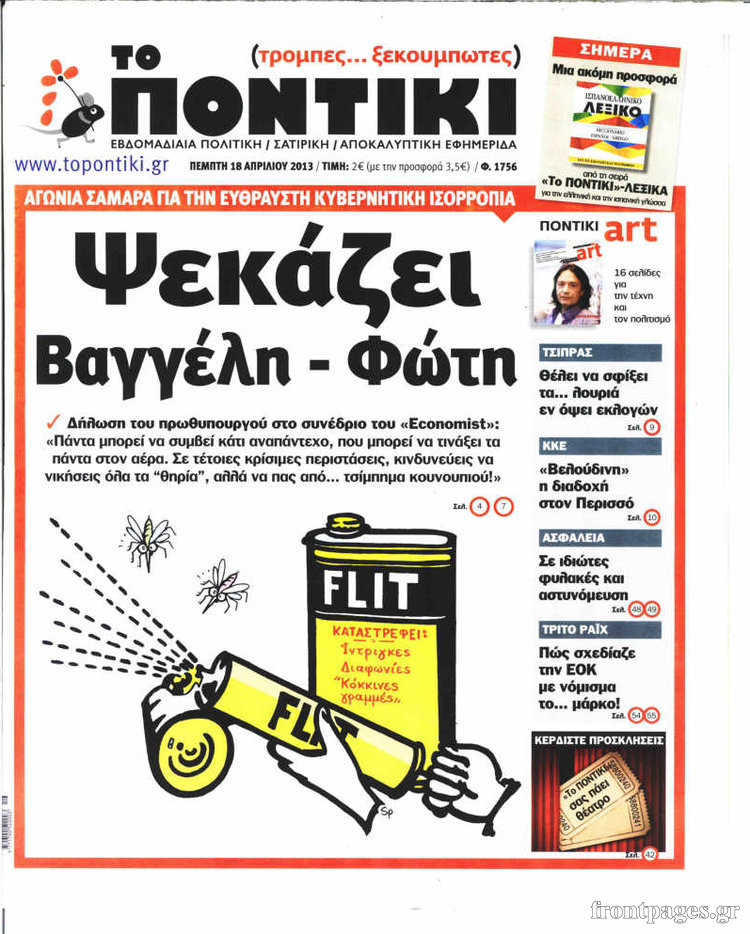 Η εφημερίδα “Το Ποντίκι” Enikos Newsroom 08:54, Πέμπτη 18 Απριλίου 2013 Media Η εφημερίδα “Το Ποντίκι” Το πρωτοσέλιδο της εφημερίδας “Το Ποντίκι”. ΕΦΗΜΕΡΙΔΑ ΕΦΗΜΕΡΙΔΑ ΤΟ ΠΟΝΤΙΚΙ ΠΡΩΤΟΣΕΛΙΔΟ Μοιράσου το: σχολίασε κι εσύ (0 σχόλια) Ακολουθήστε το enikos.gr στο Google News και μάθετε πρώτοι όλες τις ειδήσεις Δείτε όλες τις τελευταίες ειδήσεις από την Ελλάδα και τον Κόσμο στο enikos.gr Ειδήσεις Ροή Ειδήσεων 5 ώρες πριν Αυτή είναι η λίστα με τα αιτήματα των αγροτών – Το «όχι» στη συνάντηση στο Μαξίμου και η έκκληση της κυβέρνησης για διάλογο με ανοιχτούς δρόμους 3 ώρες πριν Απάτες με επιδοτήσεις από τον ΟΠΕΚΕΠΕ στην Κρήτη: Ξεκίνησε η μεταγωγή των 16 συλληφθέντων στην Αθήνα – Τι λένε οι δικηγόροι τους 5 ώρες πριν Κρήτη: Θρίλερ με την εξαφάνιση του 33χρονου γιατρού – «Μου είπε “έλα πατέρα να μιλήσουμε γιατί δεν είμαι καλά”» 3 ώρες πριν Αργυρούπολη: Απείλησε με… τσεκούρι άλλον οδηγό ύστερα από καβγά – Στο αυτοκίνητό του βρέθηκε και αεροβόλο 2 ώρες πριν ΗΠΑ: Έψαχνε τον γιο του στο Ground Zero για έξι μήνες – 24 χρόνια αργότερα, η 11η Σεπτεμβρίου τον σκότωσε και αυτόν 1 ώρα πριν Ύπνος: 9 πράγματα που μπορείτε να κάνετε πριν κοιμηθείτε για να ξυπνάτε πιο χαρούμενοι το πρωί, σύμφωνα με ειδικούς 2 ώρες πριν Αριθμολογία: Οι άνθρωποι που έχουν γεννηθεί αυτές τις 4 ημερομηνίες, δεν αντέχουν να κάνουν μία κλασική δουλειά γραφείου 4 ώρες πριν Γιατί δεν είστε ευτυχισμένοι: Τα 7 σημάδια που μαρτυρούν ότι αναζητάτε την πηγή της χαράς σε λάθος μέρη 3 ώρες πριν Χριστουγεννιάτικο δέντρο: Το έξυπνο κόλπο με τα στολίδια για να φαίνεται πιο γεμάτο 5 λεπτά πριν «Το παιδί»: Η Άρτεμις κάνει μια μακάβρια ανακάλυψη – Τι θα δούμε στα επόμενα επεισόδια 13 λεπτά πριν Διπλό φονικό στη Φοινικούντα: Δύο νέα πρόσωπα στο «κάδρο» των ερευνών – Οι αντιφάσεις στις καταθέσεις του ανιψιού 21 λεπτά πριν Η Κουταλένια: Η ιστορία ενός αυτιστικού κοριτσιού που βρίσκει παρηγοριά στη φωνή της Μαρίας Κάλλας ανεβαίνει στο θέατρο Μουσούρη 29 λεπτά πριν Αργυρούπολη: Έκλεψε το κινητό 74χρονου που επέβαινε σε συρμό του μετρό και… απαίτησε 100 ευρώ για να του το επιστρέψει 36 λεπτά πριν Φαίη Ξυλά: «Ήταν πολύ άσχημες περιπτώσεις – Δεν θα το άλλαζα, απλώς σίγουρα δεν θα το έκανα ξανά» ENIKOS NETWORK «Με αυτόν τον τρόπο κατάφερα να απογειώσω τη σεξουαλική μου ζωή» – Τι αποκαλύπτει 40χρονη Πείτε «τέλος» στην ακμή χωρίς φάρμακα – Ειδικός αποκαλύπτει αποτελεσματική ρουτίνα περιποίησης Νέα εποχή για την Εγνατία Οδό – Τι αλλάζει με επενδύσεις 1,8 δισ. ευρώ Στάση εργασίας στα λεωφορεία την Τετάρτη 17 Δεκεμβρίου – Κανονικά τα περιαστικά δρομολόγια Σύγχρονος Νοστράδαμος: Προειδοποιεί για «μεγάλο γεγονός» τους επόμενους μήνες που θα συγκλονίσει τη Βρετανία και τον κόσμο Τεστ παρατηρητικότητας: Μπορείτε να βρείτε τις 3 διαφορές στις εικόνες με έναν πιγκουίνο σε 14 δευτερόλεπτα περισσότερα 22:56 , Σάββατο 13 Δεκεμβρίου 2025 «Το παιδί»: Η Άρτεμις κάνει μια μακάβρια ανακάλυψη – Τι θα δούμε στα επόμενα επεισόδια Μη χάσετε τις εξελίξεις στα νέα επεισόδια της μαύρης κοινωνικής κωμωδίας «Το παιδί», στην ΕΡΤ1... 22:16 , Σάββατο 13 Δεκεμβρίου 2025 Άγιος έρωτας- επόμενα επεισόδια: Ο Αντρέας μαθαίνει ότι ο Χάρης είναι γιος του Μια εβδομάδα γεμάτη καταιγιστικές εξελίξεις στα νέα επεισόδια της σειράς “Άγιος Έρωτας... 20:40 , Σάββατο 13 Δεκεμβρίου 2025 HOTΕΛ ΕΛVIRA: Η Ελβίρα προσπαθεί να βγάλει οριστικά από το μυαλό της τον Χάρι, απόψε στις 21:00 Σε προεκλογικό πυρετό βρίσκεται το νησί, στο νέο 