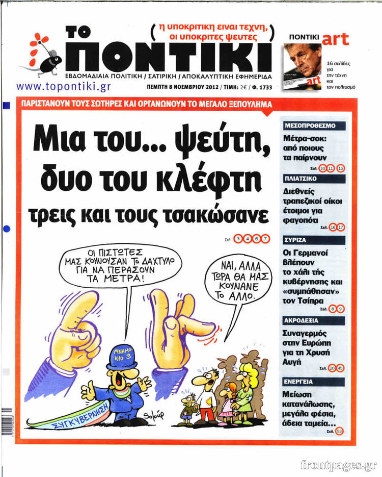 Η εφημερίδα “Το Ποντίκι” Enikos Newsroom 09:20, Πέμπτη 08 Νοεμβρίου 2012 Media Η εφημερίδα “Το Ποντίκι” Το σημερινό πρωτοσέλιδο της εφημερίδας “Το Ποντίκι”. ΕΦΗΜΕΡΙΔΑ ΕΦΗΜΕΡΙΔΑ ΤΟ ΠΟΝΤΙΚΙ ΠΡΩΤΟΣΕΛΙΔΟ Μοιράσου το: σχολίασε κι εσύ (0 σχόλια) Ακολουθήστε το enikos.gr στο Google News και μάθετε πρώτοι όλες τις ειδήσεις Δείτε όλες τις τελευταίες ειδήσεις από την Ελλάδα και τον Κόσμο στο enikos.gr Ειδήσεις Ροή Ειδήσεων 3 ώρες πριν ΟΠΕΚΕΠΕ – Κρήτη: Στην Ευρωπαϊκή Εισαγγελία οι 15 από τους 16 συλληφθέντες για τις παράνομες επιδοτήσεις 37 λεπτά πριν Πανεπιστήμιο Μπράουν: Βίντεο με αστυνομικούς να διασώζουν φοιτητές που είχαν κρυφτεί σε βιβλιοθήκη – Μαρτυρίες για σκηνές χάους και τρόμου 11 ώρες πριν Ανυποχώρητοι οι αγρότες: Δεν πάνε στο Μαξίμου, κλιμακώνουν τις κινητοποιήσεις – Ποια είναι τα αιτήματά τους 1 ώρα πριν Δώρο Χριστουγέννων 2025: Αντίστροφη μέτρηση για την καταβολή του – Ποιοι θα πάρουν περισσότερα φέτος και τι ισχύει για τη μερική απασχόληση 2 ώρες πριν Κυριακή με ανοιχτά καταστήματα σήμερα: Το ωράριο λειτουργίας – Τι ισχύει για τα σούπερ μάρκετ 1 ώρα πριν Ξέσπασε σε κλάματα με το χριστουγεννιάτικο δώρο του άνδρα της – «Μου είπε ότι είμαι το πιο αχάριστο άτομο που έχει γνωρίσει» 2 ώρες πριν Στο φως απομεινάρια μιας ξεχασμένης πόλης που «σημαδεύτηκε από συγκρούσεις» – Είναι θαμμένη κάτω από σύγχρονη μεγαλούπολη 4 ώρες πριν Σπλαχνικό λίπος: Γιατρός του Χάρβαρντ αποκαλύπτει 7 τροφές που βοηθούν στη μείωσή του με φυσικό τρόπο 5 ώρες πριν Τα ζώδια σήμερα, Κυριακή 14 Δεκεμβρίου: Παρθένοι, αφιερώστε χρόνο για να καταλάβετε καλύτερα τα συναισθήματα 2 λεπτά πριν Κυριάκος Μητσοτάκης μετά το «όχι» των αγροτών: Διάλογος δεν γίνεται με τελεσίγραφα και οι λύσεις προκύπτουν μόνο από συζήτηση 8 λεπτά πριν Η ζωή γίνεται πολύ καλύτερη για 3 ζώδια – «Ίσως έχει έρθει η ώρα να κάνετε μια πραγματική και μόνιμη αλλαγή» 11 λεπτά πριν Τσιάρας για το «όχι» των αγροτών στη συνάντηση με Μητσοτάκη: «Αναλαμβάνουν τη δική τους ευθύνη για τη μη προσέλευση στον διάλογο» 20 λεπτά πριν NBA Cup: Σαν Αντόνιο και Νικς θα διεκδικήσουν το κύπελλο 29 λεπτά πριν Λακωνία: 13χρονη έπεσε σε πηγάδι με νερό 5 μέτρων – Έμεινε εγκλωβισμένη για 50 λεπτά ENIKOS NETWORK Η «βρώμικη» αλήθεια για τον στεγνωτήρα χεριών: Πώς διασπείρει τα μικρόβια αντί να τα εξαλείφει, σύμφωνα με το Κλίβελαντ Η Samantha του Sex & The City αποκαλύπτει την εμπειρία της με την εμμηνόπαυση: «Έμαθα καλύτερα τον εαυτό μου» e- ΕΦΚΑ και ΔΥΠΑ: Ο «χάρτης» των πληρωμών έως και τις 19 Δεκεμβρίου Εθνικό Μητρώο Παροχών και Ενισχύσεων: Ποιες αλλαγές έρχονται και πώς θα λειτουργεί Σύγχρονος Νοστράδαμος: Προειδοποιεί για «μεγάλο γεγονός» τους επόμενους μήνες που θα συγκλονίσει τη Βρετανία και τον κόσμο Τεστ παρατηρητικότητας: Μπορείτε να βρείτε τις 3 διαφορές στις εικόνες με έναν πιγκουίνο σε 14 δευτερόλεπτα περισσότερα 08:46 , Κυριακή 14 Δεκεμβρίου 2025 Η Realnews στο www.pressreader.com Διαβάστε την ψηφιακή έκδοση της εφημερίδας στην οθόνη του κινητού, του tablet και του υπολογισ... 08:15 , Κυριακή 14 Δεκεμβρίου 2025 Σήμερα με τη Realnews: Food & Travel μαζί Beaute και Μαστορέματα Σήμερα με τη Realnews: Food & Travel μαζί Beaute και Μαστορέματα Food & Travel Ετοιμάζ... 07:46 , Κυριακή 14 Δεκεμβρίου 2025 Σήμερα με τη Realnews: Σκάναρε & κέρδισε με το PaduApp Τo κορυφαίο app επιβράβευσης στην Ελλάδα που σε ανταμείβει για κάθε αγορά! Κέρδισε με 3 μόνο β... 06:05 , Κυριακή 14 Δεκεμβρίου 2025 Σήμερα με τη Realnews: Δωροεπιταγή 10€ Δωροεπιταγή αξίας 10€ για αγορές άνω των 60€ α