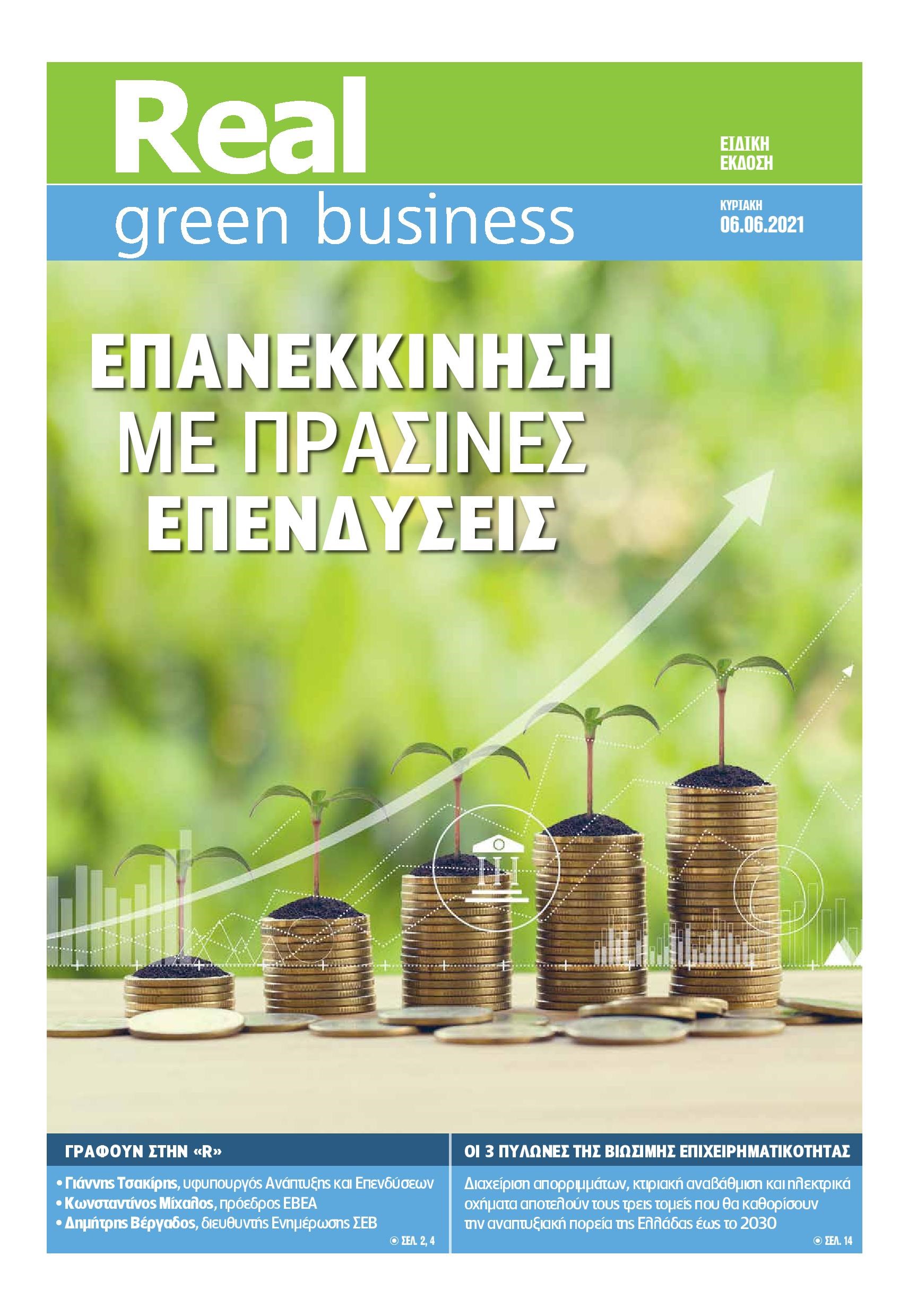 Αυτή την Κυριακή με τη Realnews, κυκλοφορεί η ειδική έκδοση Real GreenBusiness για τη βιώσιμη επιχειρηματικότητα.