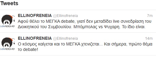Το θέμα που έχει δημιουργηθεί με το debate των πολιτικών αρχηγών σχολιάζει στο Twitter με τον ξεχωριστό της τρόπο η Ελληνοφρένεια.